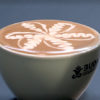 Mette in evidenza l'espressione artistica nel realizzare una decorazione sullla superficie di una tazza di latte.