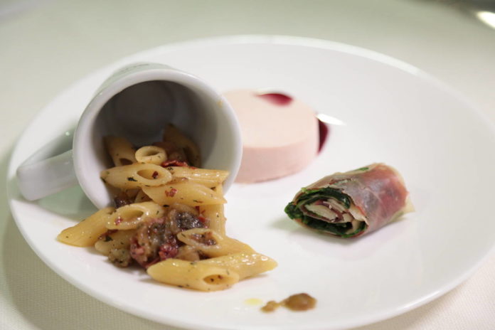 Eccole dunque le tre filosofie emerse. A cominciare da quelle del vincitore ovvero la scuola professionale In-Presa, che con il suo allievo Davide Busato ha realizzzato il piatto unico perfetto dal titolo “I tre salumi”. Nella ricetta, caratteristica che è piaciuta molto a giuria e critica, il giovanissimo chef è riuscito a usare i salumi per comporre tre mini portate che componevano il piatto dando vita a un mini menu con cui soddisfare l’appetito del cliente. Ecco allora le mezze penne all’aglio, olio, peperoncino e prosciutto crudo, gli involtini di bresaola avvolti in fogli di carta di riso e una panna cotta al prosciutto cotto che sì è dimostrata il tocco di classe in più che ha convinto giuria e critica ad assegnare il premio all’allievo di InPresa. Un piatto intelligente, completo dal punto di vista alimentare e tra l’altro anche velocemente realizzabile (al di là della solo apparente difficoltà di preparazione) nella realtà.
