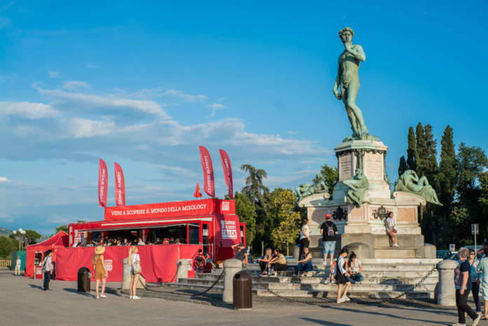 Parcheggiato per tre giorni sullo spettacolare piazzale Michelangelo che domina la città toscana, la tappa del Campari Academy Truck è stata organizzata in concomitanza con la Negroni Week 2018, settimana internazionale dedicata all'omonimo cocktail a base di Campari, gin e vermouth rosso, nato negli anni Venti da una improvvisa (e geniale) richiesta del conte Camillo Negroni al barman Fosco Scarselli del Caffè Casoni di Firenze.