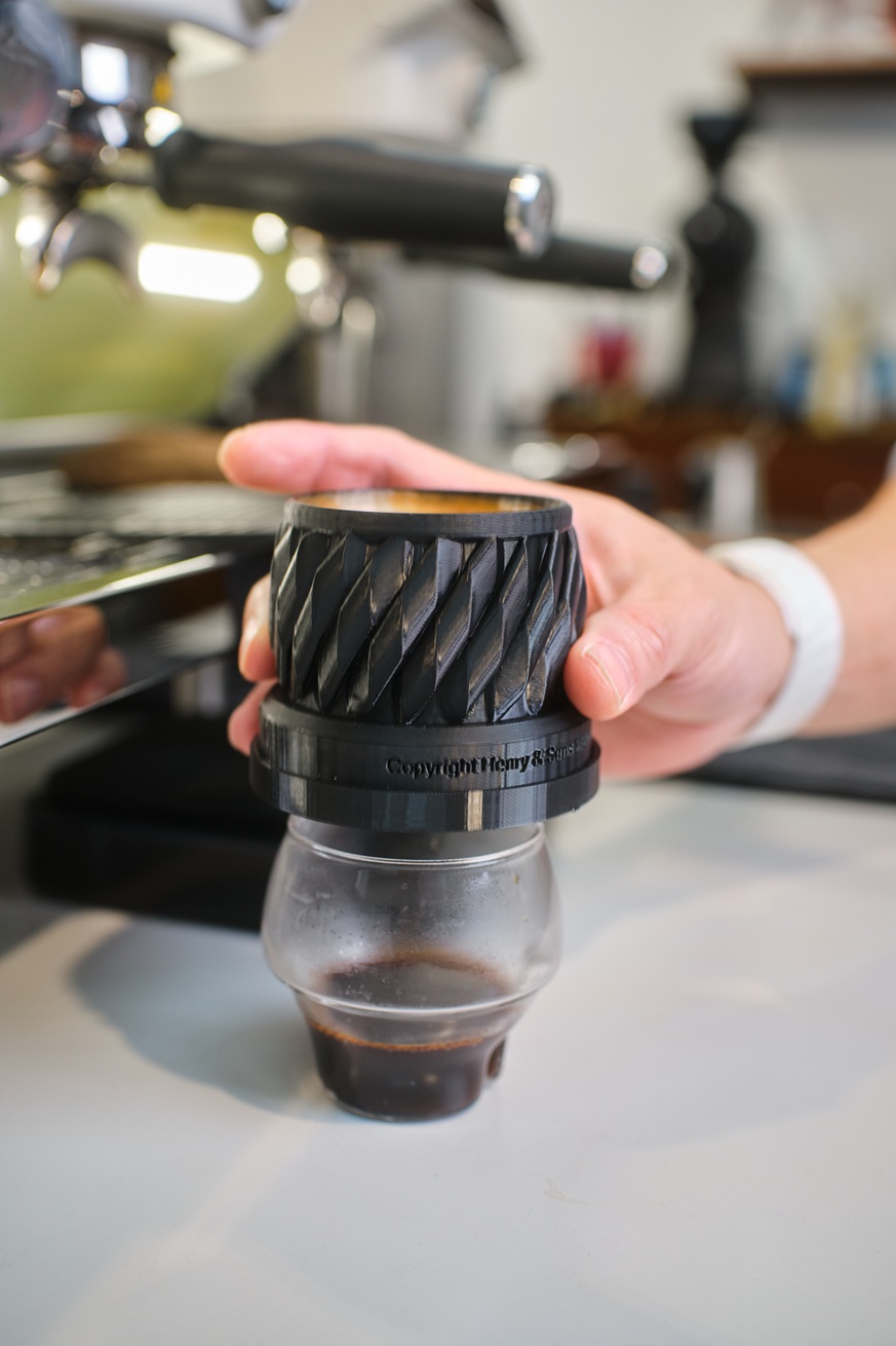 La terza sperimentazione è ancora più di nicchia e riguarda l’espresso e la gestione della crema, non come elemento estetico ma come variabile sensoriale. Durante il World Barista Championship a Milano, il competitor filippino Michael Harris ha usato uno strumento di sua invenzione, The Better Vessel: un cilindro che separa la crema dal resto del caffè.