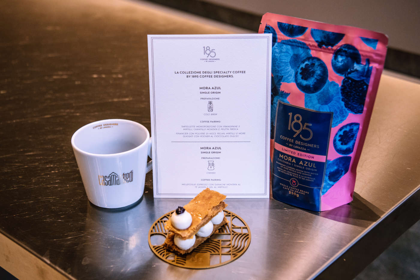 Quest’ultima release della linea specialty di Lavazza è un caffè colombiano, proveniente dalla regione della Huila e in particolare dalla piantagione Monteblanco del produttore Rodrigo Sánchez, a un’altitudine di circa 1700 metri. Una produzione sostenibile e un’accurata tostatura dei chicchi selezionati conferiscono al caffè un gusto fruttato e floreale al tempo stesso, con note che prevalgono in maniera diversa a seconda del tipo di estrazione. Assaggiato in modalità cold brew, in seguito a un’estrazione di quattro ore, Mora Azul esalta le note di frutti di bosco. Non è un caso, quindi, che le due pasticcere abbiano pensato a dolci in cui i frutti rossi erano protagonisti: un Financier alle noci pecan e ribes nero, una Tartelletta di frolla con frangipane alla crema Chantilly con frutti di bosco, un