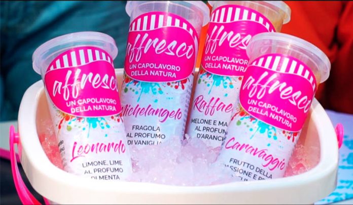 Estate caldissima, gelati e granite sono un must. Così dopo il Bombogelato - un bombolone ripieno di gelato -  il maestro pasticcere e gelatiere Roberto Rinaldini lancia un'altra novità: è Affresco, la granita a base di concentrato di frutta fresca (70%) e interamente naturale. Quattro gusti innovativi che si rifanno a nomi storici, che nascono dalla ricerca sulla qualità degli ingredienti che il pluripremiato maestro riminese non smette mai di condurre: Michelangelo (fragola al profumo di vaniglia), Raffaello (melone, mango al profumo di arancia), Leonardo (limone, lime al profumo di menta) e Caravaggio (frutto della passione e pesca al profumo di fave di tonka). Il tutto confezionato nei pratici "tubi" da spremere, caratterizzati dal tipico colore fucsia che da sempre contraddistingue il brand Rinaldini. Per un perfetto take away estivo.