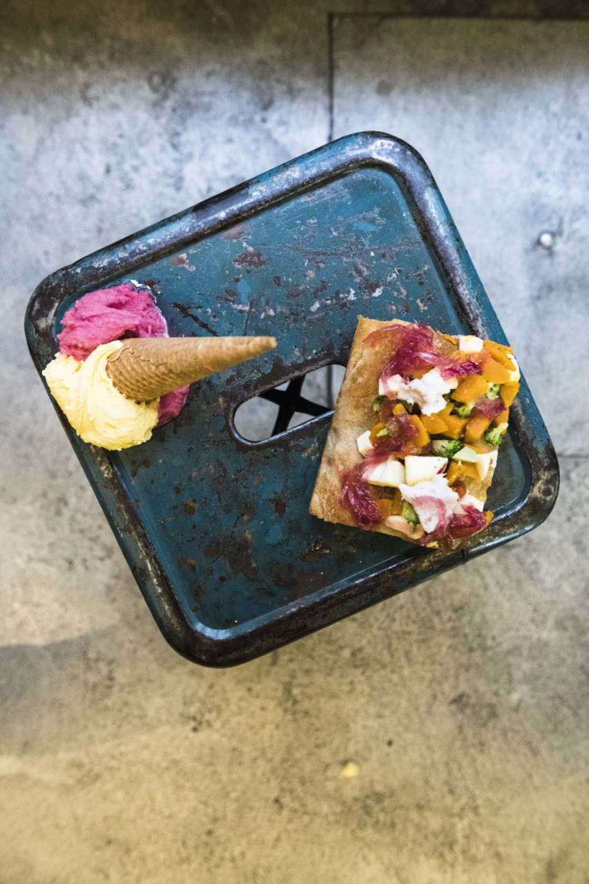 Michele Valotti e Cesare Rizzini: due amici e due professionisti che col cibo si confrontano da tempo. Il primo è chef e titolare del ristorante La Madia di Brione (Bs); il secondo è maestro gelatiere e lievitista. In comune, la curiosità nei confronti del cibo, la passione per la ricerca gastronomica, la voglia di sperimentare. Da queste basi ad aprile dello scorso anno ha aperto i battenti Alimento (circa 150 mq fra laboratorio e spazio dedicato alla vendita, in un ex panificio di cui resta ancora lo storico forno murato), un locale atipico a due passi dal tempio capitolino, dall’Università, in sostanza nel centro nevralgico (e storico) di Brescia. Atipico, si è detto, perché il core business di Alimento è incentrato su due prodotti che raramente convivono in uno stesso punto vendita: gelato artigianale e focaccia gourmet. Invece questa accoppiata rappresenta la quadratura del cerchio perché, come spiega Cesare: «Abbiamo pensato di abbinare focacce e gelato sia perché sono due prodotti italianissimi e riconosciuti come tali anche all’estero (è una nostra ambizione e progetto quello di guardare lontano), sia perché la prova dei fatti ha dimostrato che sono due prodotti complementari, che insieme “coprono” tutte le stagioni dell’anno, sopperendo ai consueti cali di vendita stagionali e garantendoci una continuità di lavoro. Cosa fondamentale per noi che amiamo fare ricerca su nuovi prodotti da inserire in linea. E la ricerca, si sa, richiede tempo e denaro, anche nel nostro piccolo». Nel locale - che oltre alla presenza costante di Cesare Rizzini conta 5 collaboratori - la parte dedicata alla vendita ha un andamento a L, che ha favorito la naturale suddivisione delle due aree: appena entrati, sulla destra si trova la parte dedicata al gelato, con i canonici pozzetti. Pochi gusti, ma prodotti con canoni rigorosi. «Non utilizziamo basi o semilavorati - afferma Michele - non partiamo da una base latte o crema per poi caratterizzarla con un ingrediente specifico, ma ogni gusto ha una sua ricetta. D’estate proponiamo circa 20 gusti di gelato e 4 di granite; sono per lo più gusti classici e i gelati alla frutta hanno un contenuto minimo di frutta del 50%: li facciamo con frutta di stagione da produttori il più possibile locali» (a 22 euro/kg).