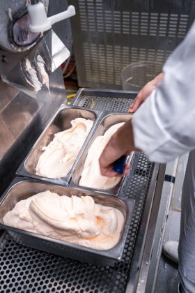 Andrea Fassi, quinta generazione della dinastia di gelatieri, ha preso le redini del Palazzo del Freddo dopo anni di personale ritrosia. Un po’ costretto dagli eventi, un po’ spinto dal forte sentimento di appartenenza che lo contraddistingue, da qualche anno ha messo il grembiule e si è lanciato nell’attività di famiglia. «Alla fine mi sono scoperto pure un bravo gelatiere, ma d’altra parte vedo fare il gelato da quando sono nato», afferma. Sua l’idea di ristrutturare il laboratorio, di renderlo fruibile anche per i tour (temporaneamente sospesi, ndr), che in poco tempo sono diventati una voce di business importante, perché garantiscono migliaia di accessi l’anno, da ogni parte del mondo. Si comincia osservando gli strumenti di un tempo, nel mini-museo ospitato nella grande sala, di fianco al bancone, poi si entra in laboratorio e ci si sofferma davanti al box dei Sampietrini, il must have di Fassi. Fondamentale anche l’effetto storytelling, resosi necessario soprattutto dopo l’affaire Corea. «È stato un momento duro per noi. Era il 2015, avevamo appena perso lo zio Fabrizio, l’ultimo Fassi che aveva dato anima e corpo alla gelateria, mentre mio padre già si occupava del franchising che avevamo lanciato appunto in Corea con un’azienda locale. La stessa che ci è venuta incontro, finanziando le quote, acquistando di fatto solo il marchio, che nel loro Paese è diventato sinonimo di buon gelato italiano, con 82 punti vendita ai quali noi forniamo tuttora le ricette e il know how. Noi Fassi abbiamo mantenuto il totale controllo del Palazzo del Freddo di Roma e per noi i coreani non sono niente di più di un socio finanziatore, ma agli occhi dell’opinione pubblica Fassi da quel giorno aveva gli occhi a mandorla. È stata dura far cambiare idea alla gente e far capire che nulla era cambiato nel cuore della gelateria». È in quel momento che Andrea ha deciso di rimboccarsi le maniche e metterci la faccia. Ci voleva un volto di famiglia, per ridare al Palazzo del Freddo il suo sapore totalmente italico e recuperarne la gloriosa reputazione. Ed è così che sono nati i tour, le masterclass, gli incontri con gli chef, gli show cooking e le serate a quattro mani, perfino una scuola di scrittura con storie a tema gelato.