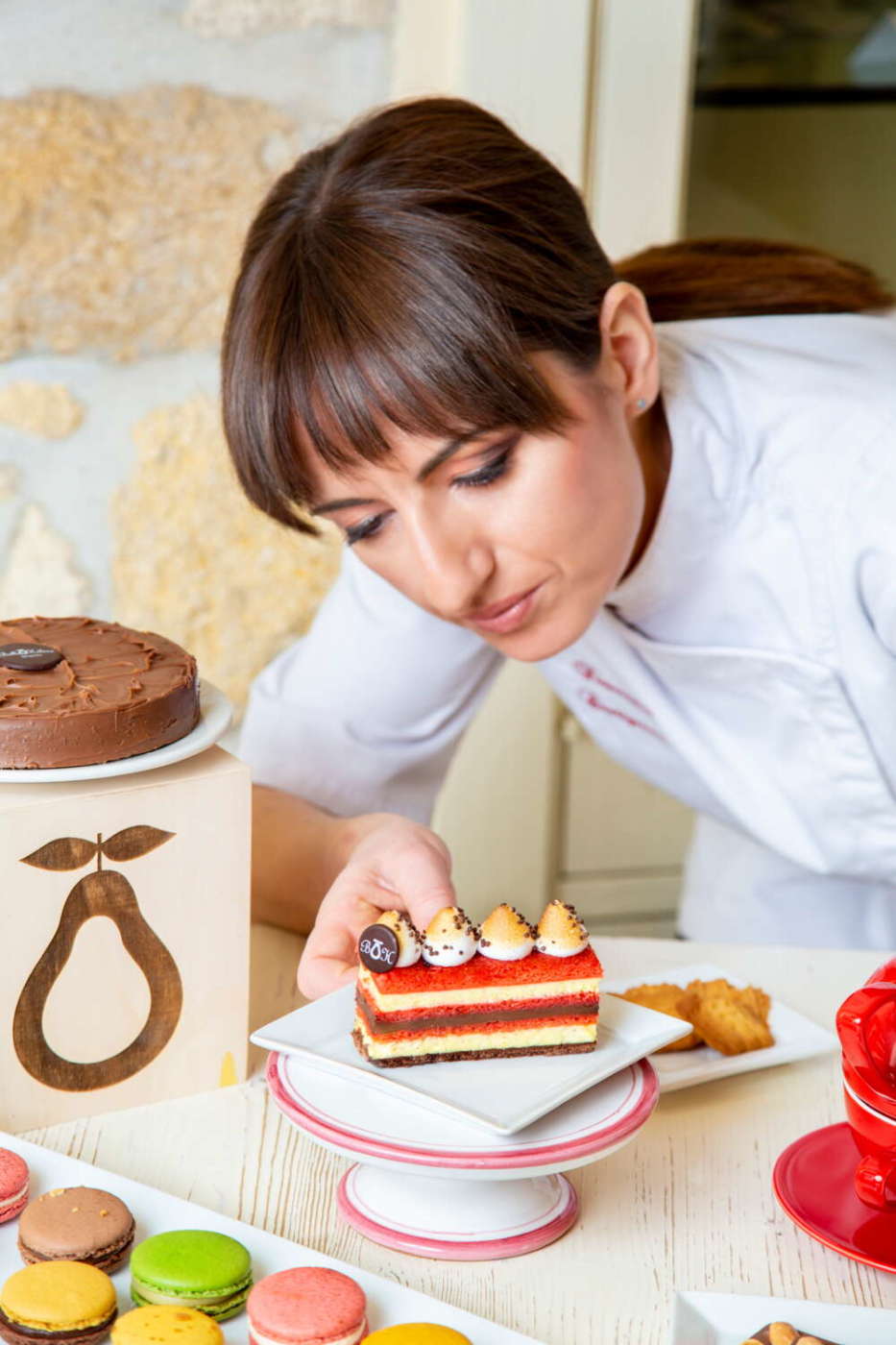 Cosa riesci ad applicare di quanto hai imparato da Pierre Hermé? Organizzazione, pulizia e rispetto tra colleghi. Certo, nelle cucine stellate l’ambiente è sempre teso e non posso dire che da Hermé non fossero severi e formali. Ma niente urla e massimo rispetto. Da espatriata e poi tornata “a casa”: ci manca qualcosa per essere all’altezza? Ero molto più esterofila da ragazza, ora no. Ora credo che dobbiamo essere più cosmopoliti e meno esterofili. All’estero si va come ci sono andata io, per il piacere di scoprire altro, viaggiando. Non è per forza meglio, non si è per forza più pagati o trattati meglio. In Italia, in tante realtà artigianali, abbiamo molta più cultura della materia prima. Un amico che ha aperto, in piena pandemia, una pasticceria a Seul, in Corea, racconta che i dipendenti coreani lo prendono per pazzo per il tempo e la carica di emozione che mette nella preparazione dei panettoni. Tre giorni per vedere finito un dolce, lì pare impensabile. Ecco, mi sembra un buon esempio di quanto vale il nostro approccio alla pasticceria. Oggi che cosa offre la tua pasticceria? Puntiamo molto sulla caffetteria, tanto che abbiamo tenuto aperto anche a Natale e Santo Stefano. Usiamo da sempre il caffè Hausbrandt, la miscela Academia che è un 97% Arabica e 3% Robusta e ci dà belle soddisfazioni. Belle Hélène ha circa 15 posti a sedere e all’esterno un dehor con altri 20-25 posti, sfruttati molto bene anche con le basse temperature. Abbiamo una selezione di prodotti salati, vorremmo fare di più ma il bancone espositivo è molto piccolo. Ma ci sta molto a cuore. Fino a prima di Natale mi sono dedicata ai panettoni: la scorsa campagna ne abbiamo venduti circa 800.