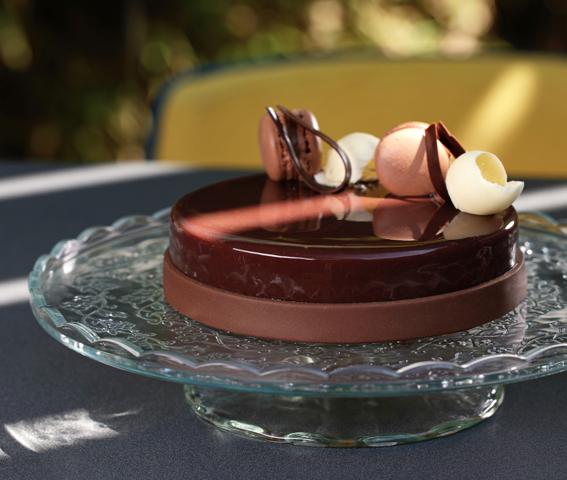 La Pasticceria Maresi ha declinato il cioccolato in tre strati - fondente, al latte e bianco - creando la Bavarese ai tre cioccolati. Ogni strato offre una consistenza cremosa. Alla base c'è un biscotto morbido al miele e vaniglia, uno speciale pan di Spagna che aggiunge una nota di intensità e struttura al dolce.
