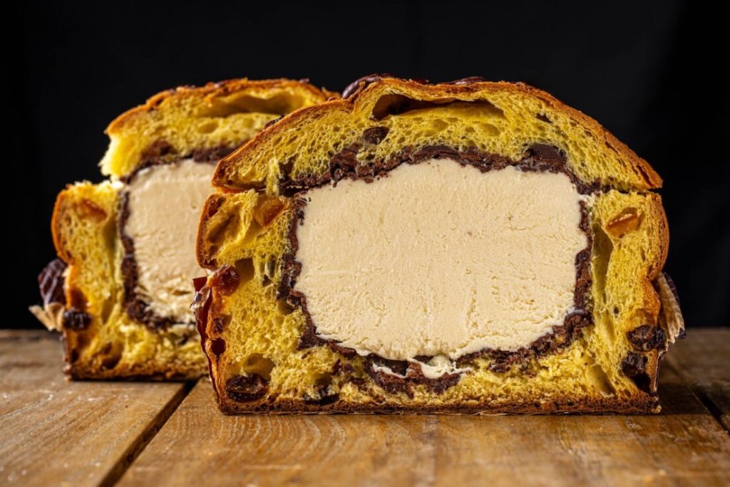Il maestro gelatiere Giuseppe Bassanelli farcisce il grande lievitato delle feste in una maniera particolare. Prima il panettone viene in parte "svuotato" e successivamente glassato nella sua parte interna con cioccolato fondente Valrhona. Solo dopo questa glassatura interna il panettone è pronto ad accogliere il ripieno di semifreddo allo zabaione. In questo modo la glassatura crea una sorta di "sigillo" che non permetterà alla farcitura di bagnare troppo l’impasto, evitando quell’effetto spiacevole di pasta inumidita. Una volta pronto, il panettone viene conservato a temperatura negativa e, prima del consumo a casa, deve essere inserito nel forno caldo (portato a temperatura ma spento al momento dell’inserimento del grande lievitato). In questo modo l’impasto tornerà soffice e scioglievole e il semifreddo e il cioccolato cremosi al punto giusto.