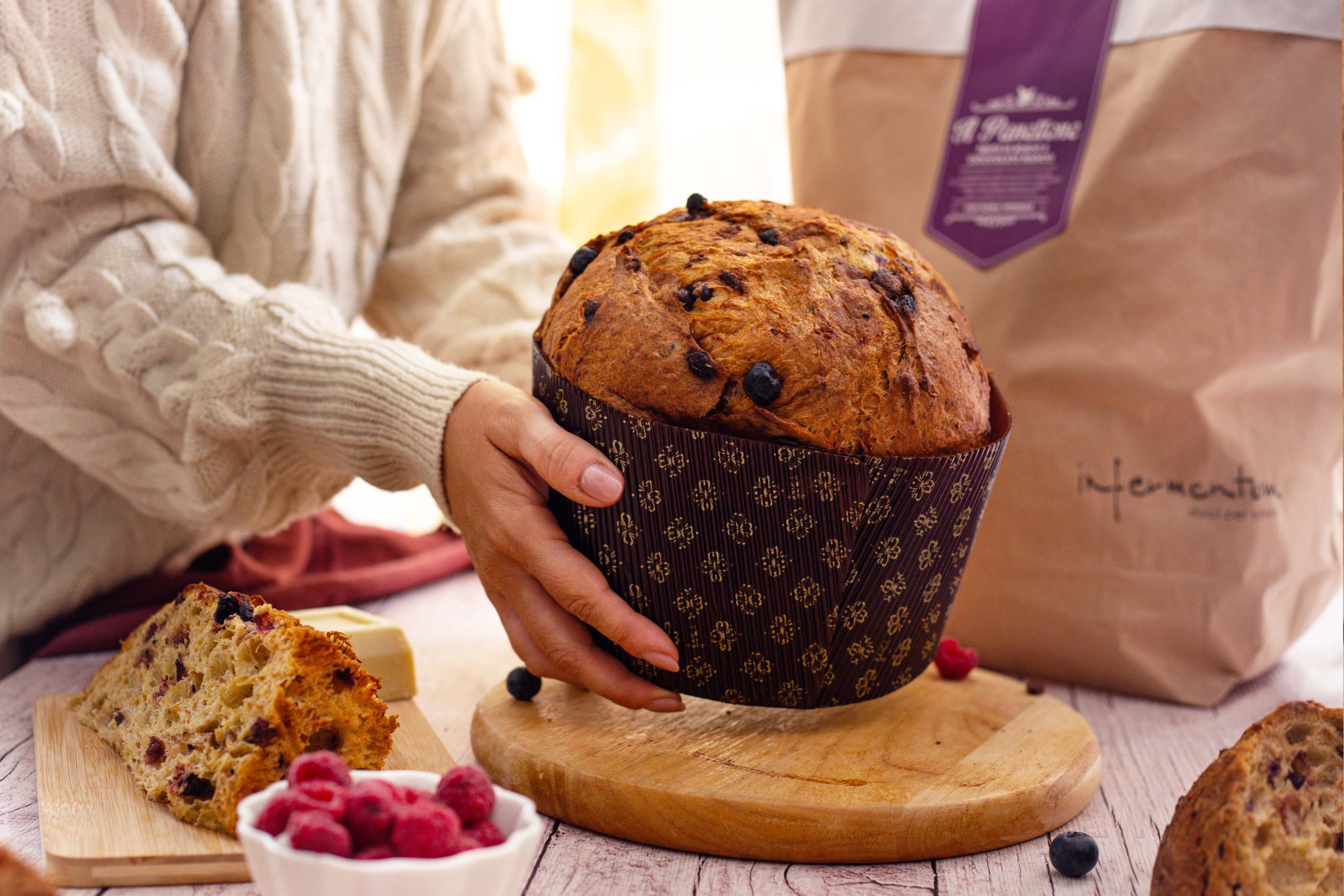 Per il Natale 2024 Infermentum presenta un panettone limited edition, con frutti di bosco e cioccolato bianco. L'impasto nasce dalla farina integrale combinata con lievito madre, si sviluppa in altezza e senza glassa, per offrire un morso completo e goloso.