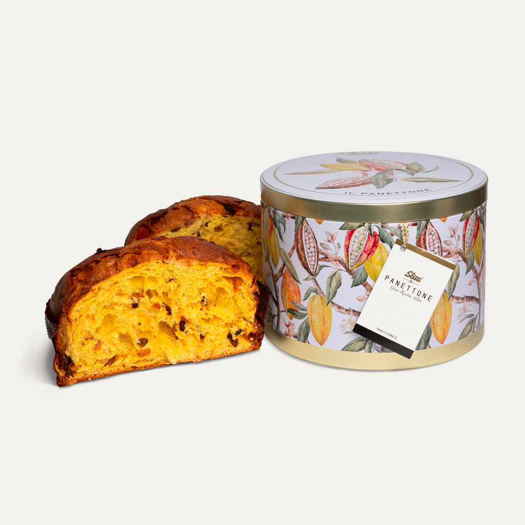 Slitti, la Fabbrica di Cioccolato che sorge a Monsummano Terme (Pistoia), omaggia il Natale con il Panettone Tradizionale Gran Ricetta Slitti e la crema spalmabile Gianera. Il grande lievitato nasce da un impasto con lievito madre, uva sultanina, arance candite e vaniglia bourbon. Si sviluppa in forma bassa, ma strega già al primo sguardo. L’abbinamento con la crema completa la magia.