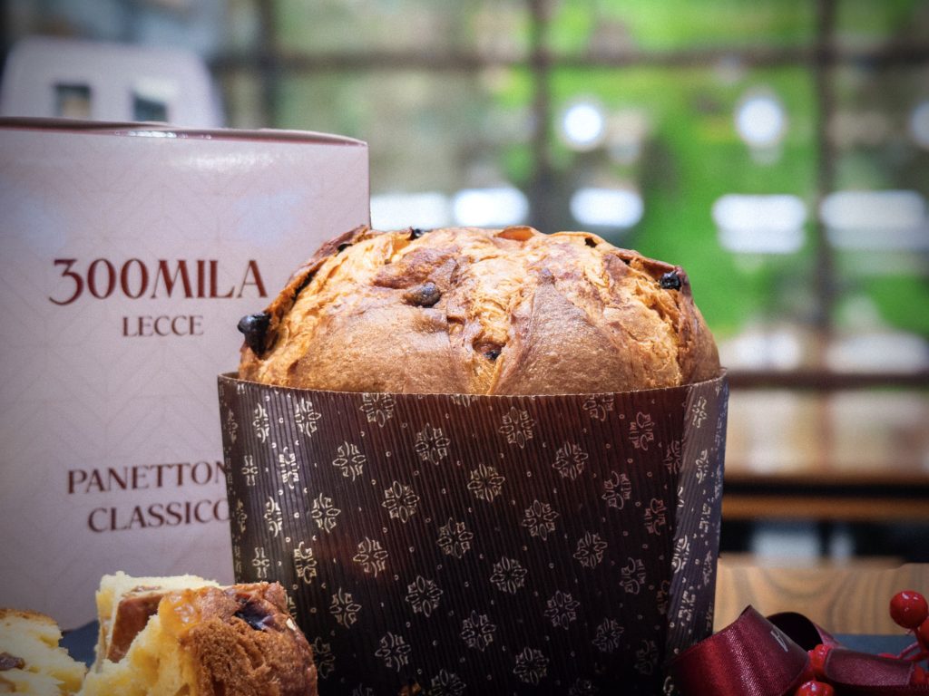 Alto, ricoperto di glassa mandorlata: è il panettone di Davide De Matteis, creatore dell'insegna 300Mila di Lecce. Fetta omogenea, di un giallo non troppo ricco. I profumi raccontano la qualità degli ingredienti utilizzati. In più, queste creazioni sono buone due volte, dato che i dolci artigianali di 300Mila sono creati nel laboratorio all’interno dell'ex carcere minorile di Lecce.