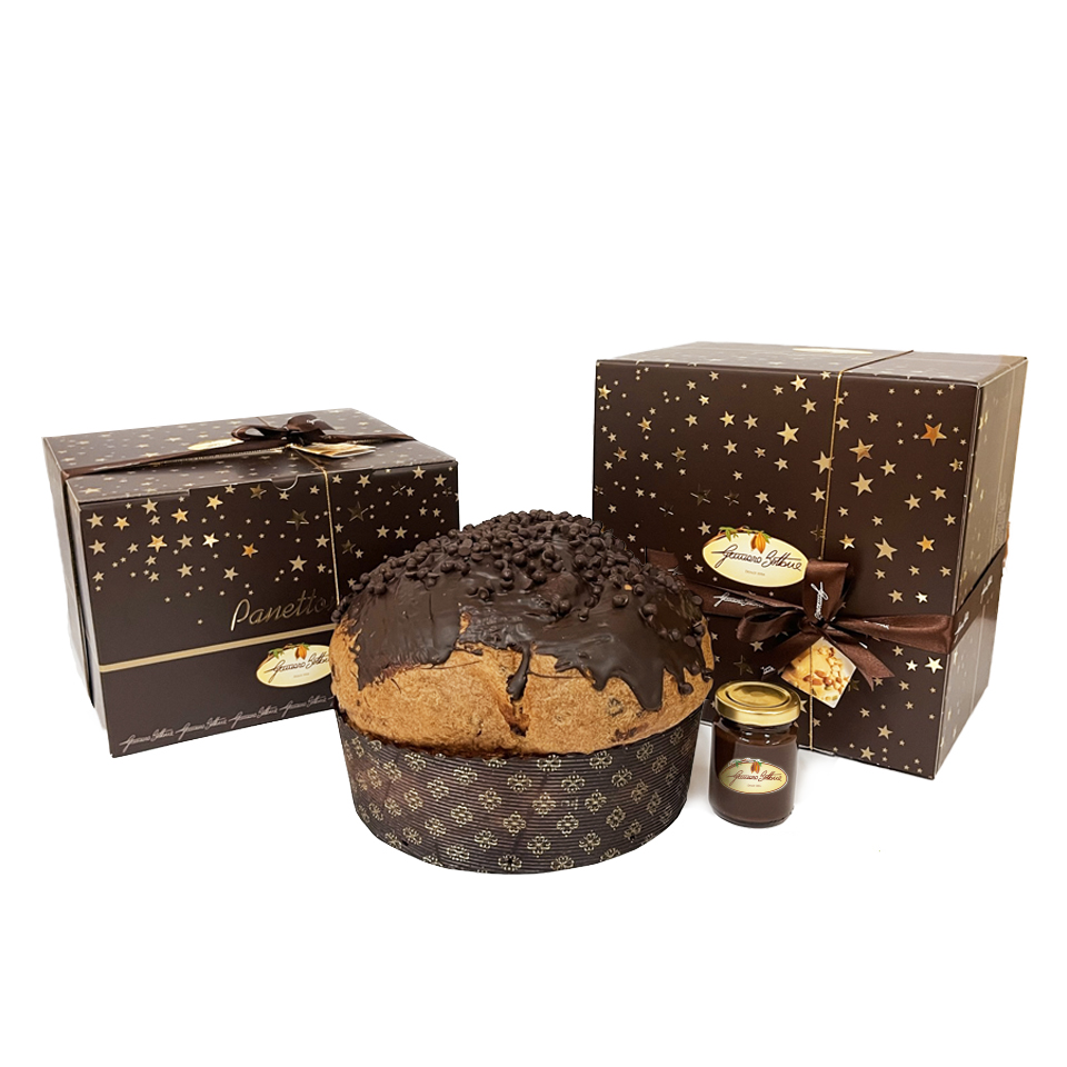 Per Gennaro Bottone non si può prescindere dalla qualità. Il panettone Gran Cioccolato di Dolce Idea arriva con abbinata la crema Nocciola Dark. La versione proposta è bassa, capace di concentrare i profumi tostati del cioccolato già dalla glassa. Da non dimenticare di spalmare la golosa crema sulle fette.