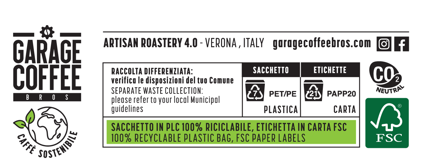 Composto da plastiche 100% riciclabili e CO2 neutral, il nuovo pack è amico dell’ambiente e stimola il consumatore a un corretto smaltimento, suggerito sul retro. Separando l’etichetta dalla confezione (operazione rapida e semplice), non solo si differenziano i rifiuti ma si partecipa anche a un programma fedeltà che la torrefazione sta mettendo a punto per i clienti più affezionati. Accanto alle informazioni per la raccolta differenziata ci sono i marchi CO2 Neutral (le emissioni della produzione dei pack sono compensate) e FSC (Forest Stewardship Council) che garantisce che la carta è prodotta da materiale proveniente da foreste gestite in modo responsabile. Con le nuove confezioni in vendita dalla mezzanotte del primo ottobre sullo shop online con uno sconto del 10% durante le 24 dell’International Coffee Day, si apre per Garage Coffee Bros. l’era dei colori, che saranno anche una guida per facilitare il consumatore nella scelta del caffè giusto per lui.