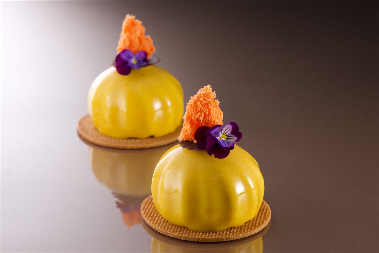 Un crumble alle mandorle, con mousse al cioccolato biondo Dulcey e frutto della passione, composta di ananas e glassa al mango. Si chiama Bacio caraibico questo invito a tuffarsi nei sapori più esotici.