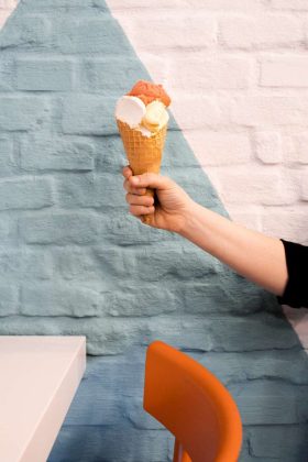 REGGIO EMILIA. In Cremeria Capolinea l’idea di coniugare stabilmente panettone e gelato stuzzicava da tempo i pensieri di Simone De Feo e della sua compagna Monica Fantuzzi (di loro avevamo scritto qui). Due prodotti che, storicamente, sono sempre stati soggetti a una stagionalità di vendite in direzione uguale e contraria. Ma le cose sono cambiate. Questo per lo meno è quanto ci racconta De Feo, che da poco ha ultimato il restyling della parte dedicata alla vendita della sua Cremeria - che vanta Tre Coni della Guida Gelaterie d’Italia del Gambero Rosso -: in sostanza l’occasione buona per inventarsi un format originale. Spiega Simone: «Dopo essermi dedicato per anni al gelato (De Feo ha rilevato la Cremeria Capolinea nel 2010, ndr), mi sono concentrato sui lievitati e nel corso degli ultimi tempi mi sono reso conto che . Così come il gelato ora viene consumato tutto l’anno, anche il panettone è apprezzato a dicembre come a maggio. In tutta Italia, ormai, oltre ad acquistarlo durante le festività, le famiglie lo servono a colazione o a merenda, da solo o in accompagnamento a un gelato o a una granita. Sono i clienti stessi a richiedere lievitati anche ad agosto. Dato che avevamo la necessità di rifare il bancone dei gelati, era il momento buono per ripensare lo spazio del negozio, arrivando ad esplicitare il più possibile l’importanza e la centralità che per noi ha assunto il panettone. Un prodotto che oggi noi proponiamo in limited edition che cambiano ogni mese, e a cui era giusto dedicare spazi adeguati. Una importanza nel nostro bilancio che abbiamo voluto evidenziare anche nel pay-off “gelato e panettone”, due prodotti che oggi hanno per noi la medesima importanza».
