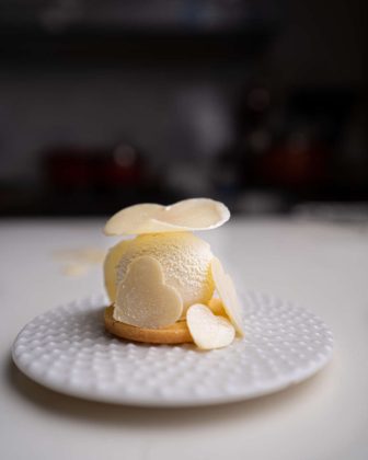 Oggi è una consulente specializzata in dessert al piatto: Annalisa Borella ha un Cv che elenca esperienze importanti, come il ruolo creativo nella pasticceria del Mirazur di Menton (3 stelle Michelin) con Mauro Colagreco e prima ancora a L'Albereta Ristorante Gualtiero Marchesi di Erbusco e al Grand Hotel a Villa Feltrinelli (Gargnano, Brescia). La sua ricetta per San Valentino è una creazione delicata nell'estetica e nel gusto: si chiama So Lovely ed è un boccone di mousse alla mandorla effetto velluto, su un sablé al pepe sansho ed agrumi, con una decorazione di petali perlescenti di cioccolato bianco.