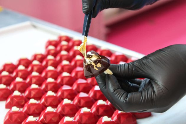 Tra cuori, biscotti glassati e gift box spunta il riflesso dorato di un diamante al cioccolato. Nella variegata proposta di Rinaldini Pastry c'è anche il Chocodiamante disponibile rosa, rosso, nero o azzurro Tiffany, è un vero e proprio anello con diamante in cioccolato finissimo, impreziosito da una foglia d'oro.