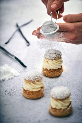 Quali sono state le vostre esperienze professionali principali, prima di questa avventura? Ho lavorato in Alto Adige, nelle cucine del St. Hubertus con il pastry chef Andrea Tortora, per quasi 3 anni (a Tortora avevamo dedicato un approfondito articolo qui). È stato proprio lui a darmi i primi contatti per trovare opportunità di lavoro a Parigi. Nicolò, invece, era imbarcato sulle navi da crociera, come chef de partie per il Gruppo Costa. Dunque, esperienze molto diverse. Sì: io in ambito pasticceria in strutture ricettive importanti, lui con esperienza sui grandi numeri e sul ritmo. Parigi, in seguito, ci ha riuniti e ci ha dato tanto in termini di esperienza e formazione sul campo. Che impostazione volete dare alla vostra Patisserie 918? Vorremmo che diventasse un posto dall’aria internazionale, dove i clienti possono assaporare dolci di qualità e sentirsi liberi di fermarsi a lavorare. Anche di apprezzare un modo di porsi da grande città, diciamo internazionale. La caraffa di acqua offerta, portata al tavolo, sembra un dettaglio ma piace moltissimo. Vorremmo al più presto allestire una sala da tè, un po’ “alla francese”, per valorizzare la merenda con un assortimento di infusi di qualità e piccola pasticceria e biscotteria. Vi siete attrezzati per le consegne? Ci stiamo adoperando, abbiamo contattato una piattaforma locale che si occupa proprio di consegne in ambito pasticceria. È fondamentale che sia garantita l’integrità del prodotto.