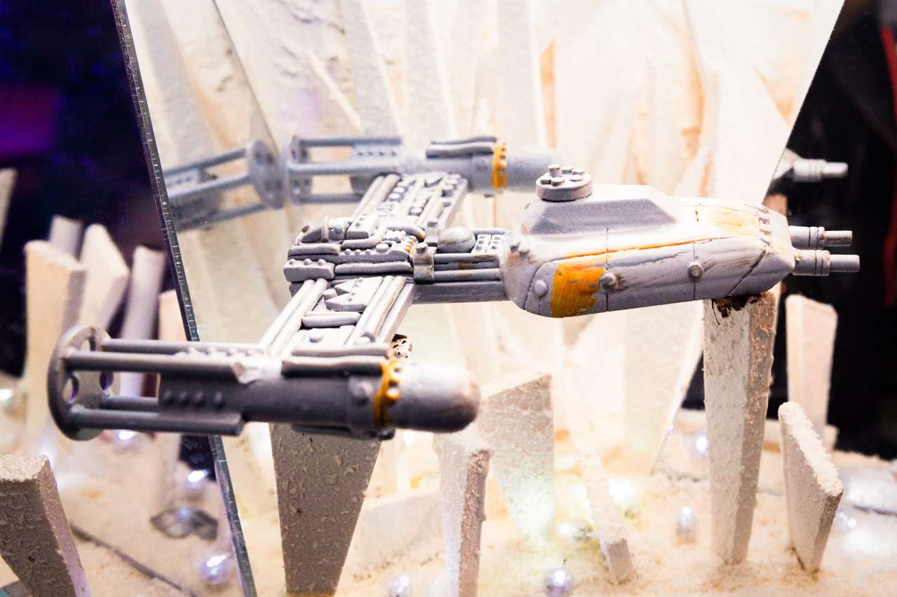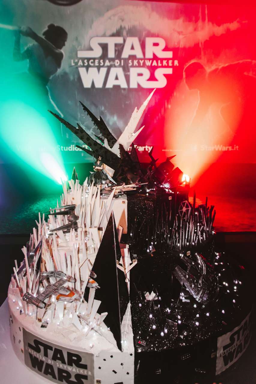 Una torta e studiata nei minimi dettagli perché raffigurasse l’eterna lotta tra il bene e il male, cuore della lunga serie di film che ci conclude con l'esordio in sala questo weekend. Ecco le dimensioni: un metro e settanta per un metro e trenta la base, composta da tre ovali divisi a metà in modo che si potessero incastrare, metà di colore bianco e metà nero. «La struttura monumentale della torta», spiegano dalla pasticceria di via Anfossi, «è stata completata con la riproduzione dei personaggi più rappresentativi dell’ultimo episodio della saga e di tutto l’universo Star Wars, con un particolare focus proprio su Kylo Ren e Rey (i due protagonisti, nel male e nel bene, della trilogia più recente di Star Wars, ndr). Sono intenti ad affrontarsi nell’ultima sfida che decreterà l’attesissima fine della saga». Attraverso l’utilizzo di luci nascoste e incorporate nella struttura, la torta si è illuminata al buio, creando un gioco ottico che ne ha enfatizzato i dettagli.
