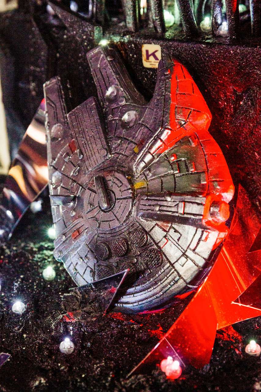 C'è il Millenium Falcon, ci sono altre astronavi e c'è una imponente ricostruzione del dualismo tra il lato chiaro e oscuro della Forza. L'iconografia fantascientifica di Star Wars rivive sulla torta di Ernst Knam, creata dal pasticcere in occasione dell'uscita dell'ultimo capitolo della saga cinematografica. Un dolce di grande impatto, presentato alla prima del film al cinema Odeon di Milano, qualche sera fa.
