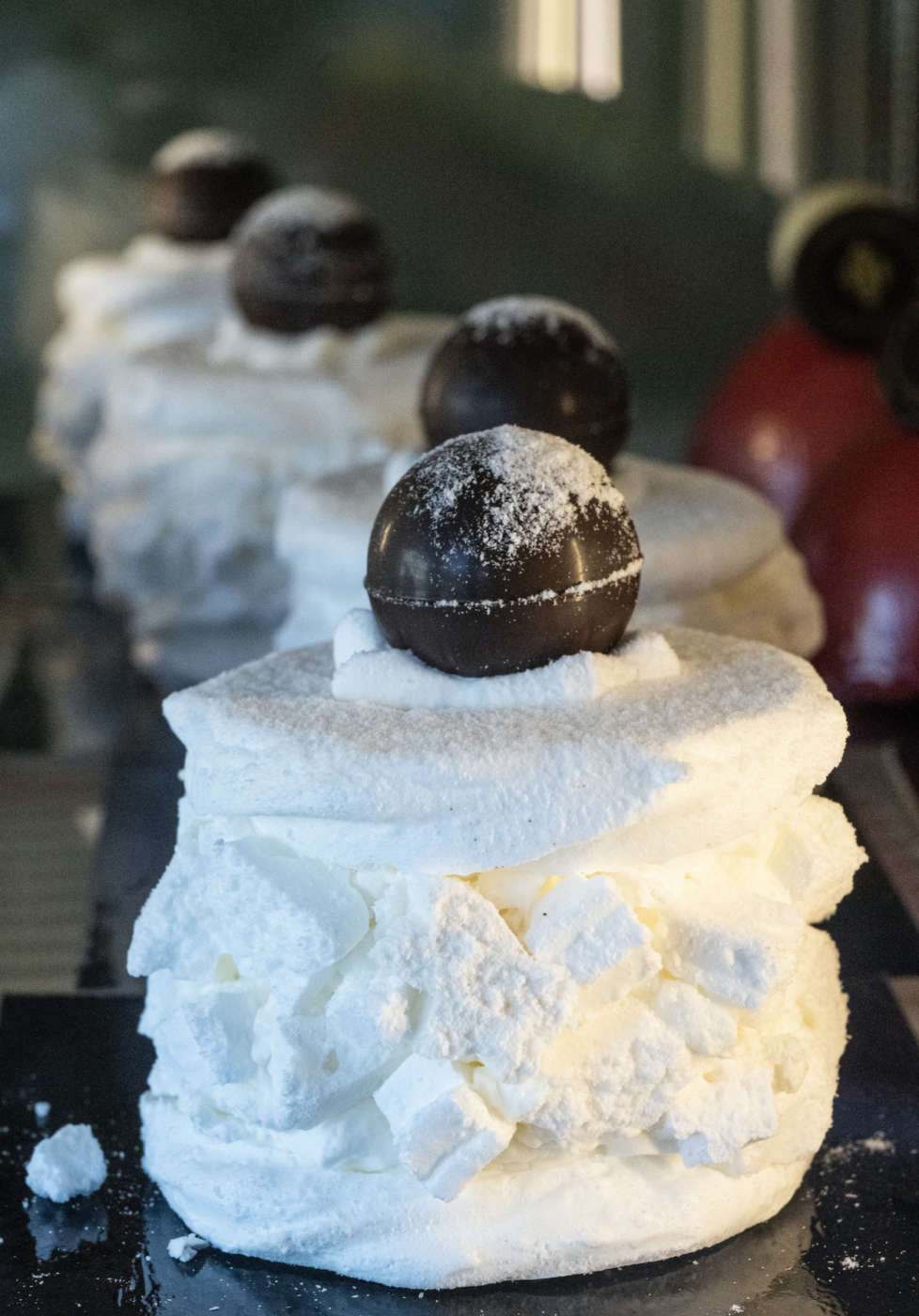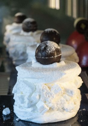 Due sostantivi che Longhin fa propri ad esempio quando mette in vetrina la mignon Pisello, ideata 40 anni fa dal padre Gianni (frolla con crema al burro e marzapane), affiancata dalla versione attuale, rivista e corretta in formato monoporzione da Fabio (biscotto di farina di grano monococco, composta di lampone, pan di Spagna all’olio di vinacciolo, namelaka al pistacchio e marzapane). Ristudiare prodotti, tecniche e abbinamenti ed esser così curiosi da non dare nulla per scontato è un must per il pasticcere varesino. «Nel ‘99 Heston Blumenthal abbinava il caviale al cioccolato bianco ed era osare l’impensabile; questi pairing “impossibili” hanno fatto scattare un cortocircuito in me, che mi porta a mettere in dubbio i soliti schemi e abbinamenti, per andare al cuore dei sapori». Ovvero studiare tecnica e ingredienti, partendo dai “fondamentali”.