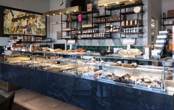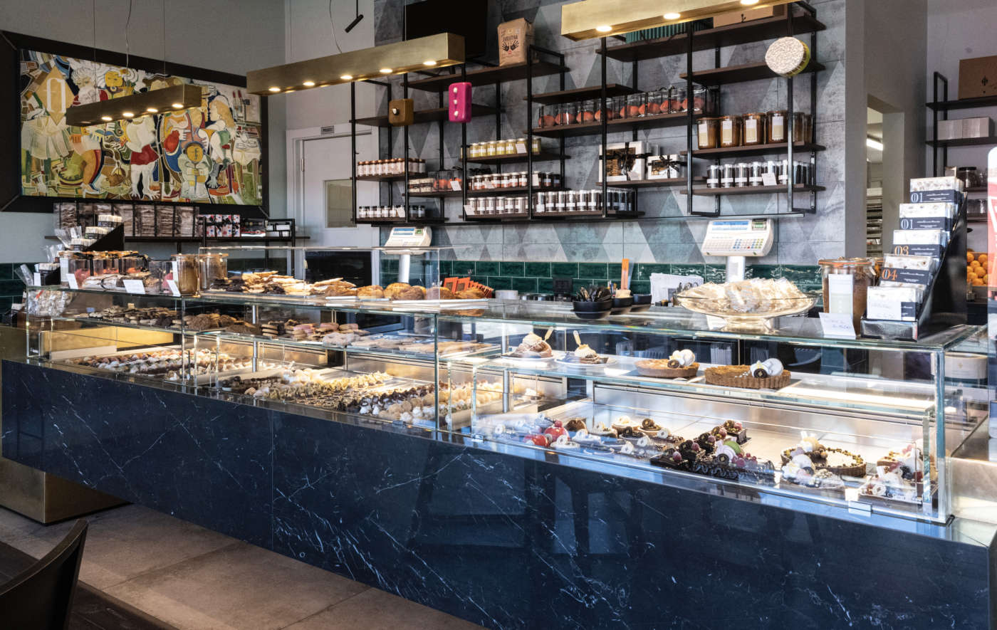 A Olgiate Olona la pasticceria Chiara è una solida realtà, dal 2009 gestita da Fabio Longhin, subentrato ai genitori che l’hanno fondata nel ‘74. «Ho fatto tesoro dei loro insegnamenti, primo fra tutti il comandamento del rispetto nei confronti dei clienti, dei fornitori, del team». Oggi tra laboratorio e negozio - ristrutturato di recente, con l’aggiunta della caffetteria - lavorano 11 persone. In gamma una selezione di mignon classiche (36 tipologie standard, che aumentano nel weekend), monoporzioni, macaron, torte e una bella selezione di brioche (16 tipi), 3 tipi di muffin, uno strudel e una sfoglia. In più, la Brioche della settimana (2,80 €). «La prepariamo con farina di tipo 1 arricchita di una parte germogliata. Abbiamo scelto la forma del “nodino” e siamo partiti con quella farcita con crema liquirizia e limone, che è piaciuta molto; adesso ad esempio abbiamo quella con crema alla mela verde, ma abbiamo fatto anche quella con namelaka al cioccolato bianco e caramello. In questo ci piace dare sempre qualcosa di nuovo ai clienti e a quanto pare ci abbiamo azzeccato». Il tutto, per quanto concerne il caffè, affiancando all’espresso tradizionale dei monorigine di El Mundo, che cambiano ogni mese. Fra le tante proposte, ce n’è una che, a sentire il pasticcere, in questo momento lo rappresenta pienamente. «È un prodotto in cui è sintetizzato il mio lavoro più recente: è una nostra tavoletta di cioccolato Valrhona Tulakalum (parola Maya che significa “insieme”) a forma di rombo, costituita da 9 rombi tridimensionali, uno diverso dall’altro per spessore e dimensione (su una forma creata dall’amico designer Stefano Porcini). All’interno abbiamo un inserto di frolla ottenuta dalla farina Evolutiva del mio campo e bergamotto, una delle essenze usata dagli amici distillatori 4M Spirits. Concettualmente qui si ritrova il concetto di “insieme” che stimola e porta a bei risultati».