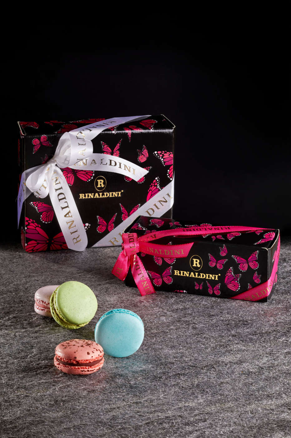 Il maestro Roberto Rinaldini non poteva esimersi: si è fatto ispirare dalla rosa, ed ecco il risultato. La torta Mamy, con Pan di Spagna alla vaniglia, croccantino di wafer al gianduia bianco, cremoso ai frutti esotici, purea di frutti rossi, crema leggera al lampone ed una glassa al cioccolato bianco e lamponi. Adagiata sulla torta e realizzata completamente a mano, una rosa color rosso scarlatto in cioccolato bianco, impreziosita da piccole gocce di rugiada, finemente ricreate. La seconda proposta è la Butterfly Box, la confezione di MacaRAL in limited edition firmata Rinaldini decorata con le farfalle, sinonimo di purezza.