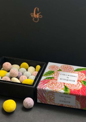 Il maestro torinese del cioccolato Guido Gobino ha realizzato una scatolina dedicata alla Festa della mamma 2021, impreziosita da una fascia illustrata con note floreali. All’interno, una selezione di dragée: la nocciola Tonda e Gentile Trilobata, con una ricopertura di Blend 75% e la mandorla Siciliana, con una ricopertura di cioccolato al latte, entrambe decorate con i colori della primavera.