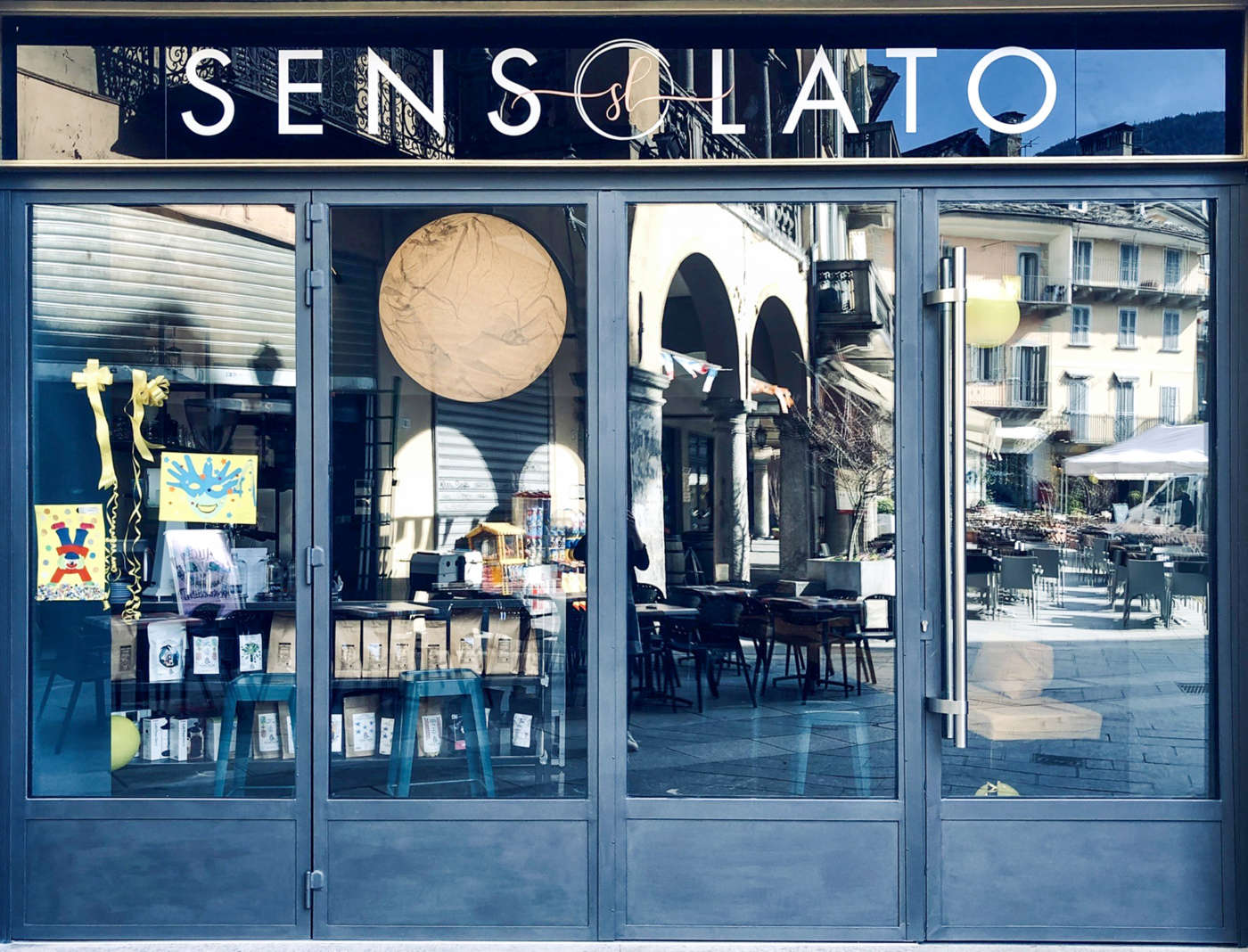 La gelateria e caffetteria SensoLato è un locale che parte dall’ordinario per esplorare nuovi orizzonti: ricerca, sperimentazione e innovazione ne caratterizzano l’offerta. La sua ampia vetrina si apre del tutto nella stagione calda e si affaccia su piazza Mercato, dove si trovano alcuni tavolini, con 15 posti a sedere. Sono altrettanti all’interno di un locale di 30 metri quadri sfruttati al meglio. Il banco squadrato in acciaio e vetro che lo percorre per la lunghezza mantiene alla giusta temperatura 24 pozzetti che ospitano 20 gusti di gelato e 4 granite a rotazione. La mente tecnica e creativa, alla continua ricerca di nuovi gusti e suggestioni da trasmettere alla clientela, è Marco Lugarà, 34 anni, studi da designer, un corso in Cast Alimenti e un’esperienza in gelateria che lo spinge con la moglie Sara Bernardini, 33 anni, studi di ingegneria edile ed esperienza nel settore del dolce-freddo, ad aprire un locale nel febbraio 2020 nella loro città. L’avvio non è dei migliori: dopo due settimane chiude a causa del Covid per due mesi e mezzo; poi è un susseguirsi di aperture e chiusure. Ma con soddisfazione Marco può affermare: «Siamo ancora qui e ne siamo soddisfatti. Unendo gelato e caffè ci siamo proposti di dare continuità di lavoro durante tutto l’anno: il primo è trainante nella stagione calda, il secondo in quella fredda, tuttavia entrambi fanno sì che il cliente dia attenzione anche all’altro e colga l’occasione di una consumazione anche fuori stagione».