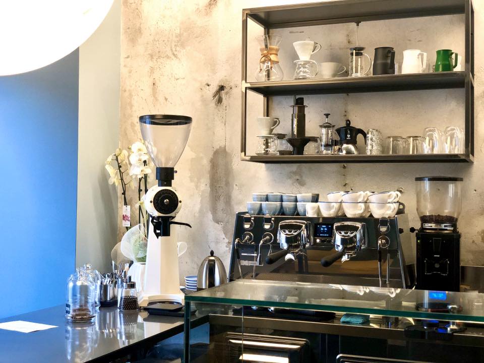 All’ingresso nel locale, il primo incontro è con la sua piccola postazione, sulla quale si trovano alcuni pacchetti di caffè e delle campane di vetro poste su contenitori con diverse origini, con cui il cliente fa la prima conoscenza attraverso l’olfatto. Sul retrobanco si trova la macchina espresso Eagle One di Victoria Arduino. Fare accettare questi caffè così diversi dalla classica miscela italiana, con la loro tostatura più chiara, un corpo più leggero e la nota acidula degli Aarabica è stata ed è ancora un’impresa complessa. Non mancano gli abbinamenti tra i due protagonisti del locale, nei gusti caffè e tiramisù, ma anche in coffee pairing per il momento aperitivo: è piaciuto molto uno a base di gelato al gorgonzola con cialdine croccanti di polenta, abbinato a un filtro di Etiopia.