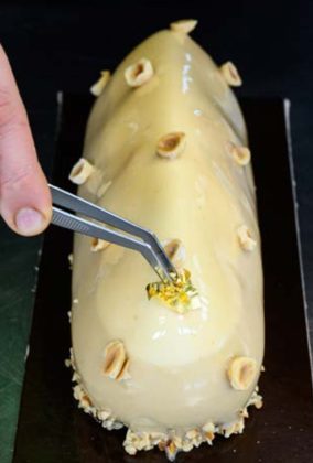 Ma prima della Nocciolina? «Il TiramiSuper. Lo preparo come se fosse uno zabaione alla vaniglia, cuocendo a bagnomaria con l’aggiunta di una punta di amido di mais, che dà stabilità e un pizzico di sale, che amo mettere in tante ricette. Il tutto è portato a pastorizzazione a 82 °C; questa base poi è montata e si aggiunge mascarpone e panna; così ottengo una struttura più compatta rispetto alla vaporosità di una classica pâte a bombe al mascarpone; a mio parere in questo modo la consistenza è preferibile e il sapore, anche quello della vaniglia, che in cottura ha rilasciato i suoi aromi, si esalta». Un altro prodotto in testa alla classifica di vendite è il cannoncino, il cui punto di forza è una sfoglia molto friabile: «È caramellato con zucchero semolato - conclude - e non “brillato” con lo zucchero a velo, che darebbe brillantezza, ma non la nota caramellata. E poi c’è la crema pasticcera, che sbattiamo a mano a 10 litri ogni volta, liscia e setosa e con un pizzico di sale».