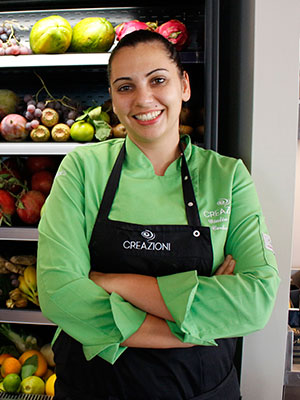 Gli spazi di Creazioni sono ampi, con un bel dehors, per un totale di 150 coperti (pre pandemia). «Nel 2017 - spiega Giulia Cerboneschi - si era reso disponibile questo locale. Abbiamo rifatto la sala riducendone le dimensioni, per avere un laboratorio più grande. Siamo in 8 persone e i ritmi sono intensi: con la bella stagione arriviamo a fare anche 500 brioche al mattino». In laboratorio, tutto (o quasi) è nuovo: «Avevamo già i frigoriferi e un forno Unox, ne abbiamo aggiunto un altro, la sfogliatrice, il tuffante, una cella; attrezzature indispensabili per consentirmi di affrontare la produzione per come la intendo io: preparare il più possibile internamente, a partire dal pane realizzato con lievito madre, alle confetture e marmellate, alla base per la crema al cioccolato, allo zabaione ecc. Produciamo praticamente tutto, salvo il gelato (24 gusti), che da questa stagione ho deciso di acquistare da un produttore artigianale della zona, che lavora soprattutto con latte di capra».
