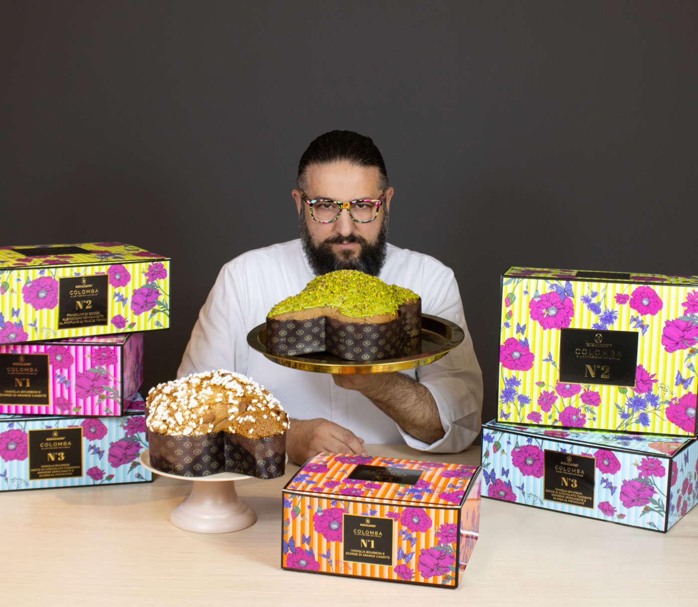 Oltre alla colomba tradizionale (22 euro per 500 grammi), l'offerta di Roberto Rinaldini si arricchisce con golose proposte. Tanti gusti contemporanei per la vetrina del Maestro Pasticcere pluricampione del mondo. Tra questi spicca la ricetta Il sapore della primavera, impreziosito di fragoline di bosco e albicocche semicandite. Chiudono il cerchio le fave di Tonka per un twist aromatico (40 euro). La seconda variante al tema classico è la colomba golosa cioccolato, amarene e pistacchio (45 euro).