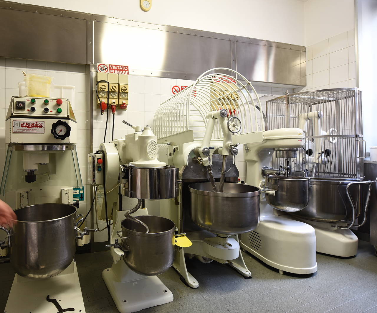 1. 2. Zona Gelato Dominato dal mantecatore Trittico Bravo e da una parete di celle frigorifere, il laboratorio del gelato è attivo con una produzione che va da Pasqua fino a settembre, mentre nel rimanente periodo è usato per la lavorazione dei lievitati. «Rispetto alla produzione di un tempo, ho deciso di passare da 25 a 13 gusti. In questo modo siamo passati da 4 macchine che consumavano molta energia a una sola, che mi consente non solo di realizzare la produzione di gelato, ma anche di fare le creme che uso in pasticceria». L'esposizione del gelato è effettuata in vaschette lunghe e poco profonde, create apposta per adattarsi a una vetrina preesistente.