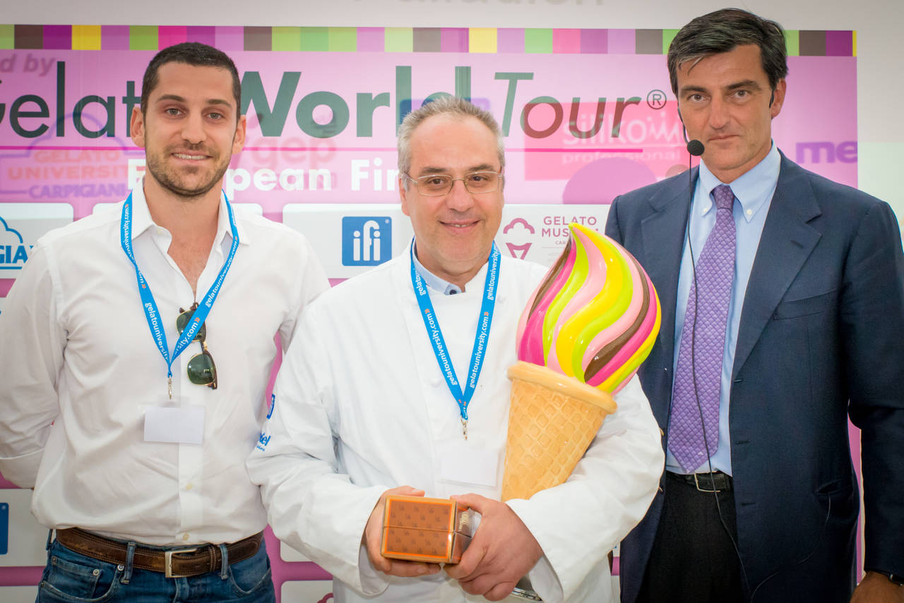 Realizzato a partire dal latte prodotto da mucche “Jersey” della fattoria, fuso con miele di prima coltura e variegatura di lamponi. Tocco finale, l’aggiunta di noci caramellate di produzione propria. Questo è lo “Kui(p)er Ijs”, yogurt al miele con lamponi e noci, di Erik Kuiper della gelateria-fattoria De Ijskuip (Denekamp, Olanda), il gusto che ha permesso al suo creatore di guadagnare il primo posto nella Finale Europea del Gelato World Tour, terminata il 25 luglio al campus della Carpigiani Gelato University di Bologna. La giuria, composta dai maestri gelatieri Giancarlo Timballo, presidente della Coppa del Mondo di Gelateria, e Sergio Dondoli, commissario di gara della Coppa del Mondo di Gelateria, e da giornalisti e rappresentanti dei paesi in gara, ha poi premiato con il secondo posto “Il Mio Cioccolato” di Renáta Somogyi, della gelateria Bringatanya Fagyizó (Gyenesdiás, Ungheria): cioccolato fondente 70% di provenienza africana, frutto della passione del Sud America, fiocchi di cereali e una salsa al cioccolato artigianale. Sul terzo gradino del podio “Arachidi e Caramello Salato” di Dimitris Charalampous, gelateria Palladion (Rodi, Grecia), realizzato con latte fresco ed una selezione di arachidi greche lavorate con caramello salato; variegatura con noccioline frammentate e cioccolato al latte. «Ha vinto il proprietario di una fattoria, e questo è significativo», spiega a dolcegiornale.it Giancarlo Timballo, uno dei Maestri in giuria. «Questo simpaticissimo concorrente olandese ci ha fatto anche una presentazione della sua attività, dalle mucche alla api, e ha realizzato il gelato con tutti prodotti suoi, una vera produzione km 0. Ci ha presentato un gelato strutturato e fatto con molta cura. Credo che siano tutti molto molto preparati, anche perché la scuola per molti di questi concorrenti è italiana. Non escluderei di vederli tra i favoriti alla finale mondiale di Rimini». Dall'8 al 10 settembre si sfideranno, infatti, per il titolo “World’s Best Gelato”, assieme ai tre gusti vincitori della finale europea, anche gli 8 vincitori dell'Italian Challange e i 3 vincitori della German Challenge. L’Europa sarà quindi rappresentata da 14 gelatieri.