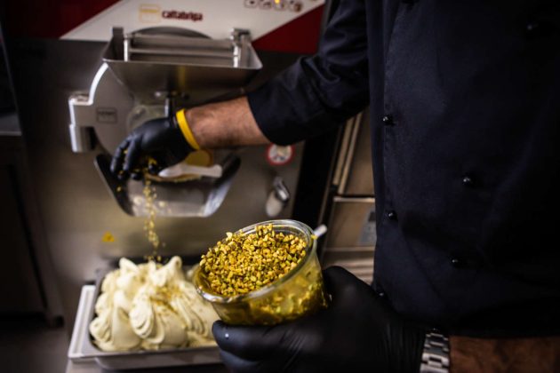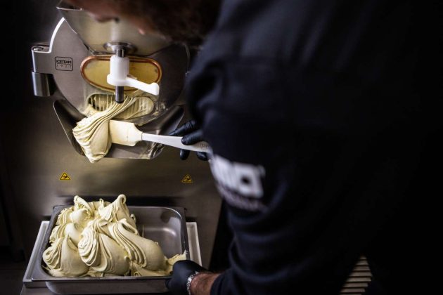 Quanto al prodotto, Cristian Monaco - già vincitore di diverse tappe del Gelato Festival - segue la filosofia della lista ingredienti corta, per produrre il gelato ricorrendo a non più di tre-quattro ingredienti. Produzione giornaliera, gelato fresco ogni mattina e gusti golosi come i cavalli di battaglia zucchero e pinoli o la Sicilia romana (con pistacchio, mandorla e pistacchi pralinati). Il laboratorio è pensato in ottica di sostenibilità, grazie a macchine di ultima generazione - abbattitori, mantecatori, forni e pastorizzatori - e attenzione al consumo delle risorse necessarie per la produzione come acqua ed energia elettrica.