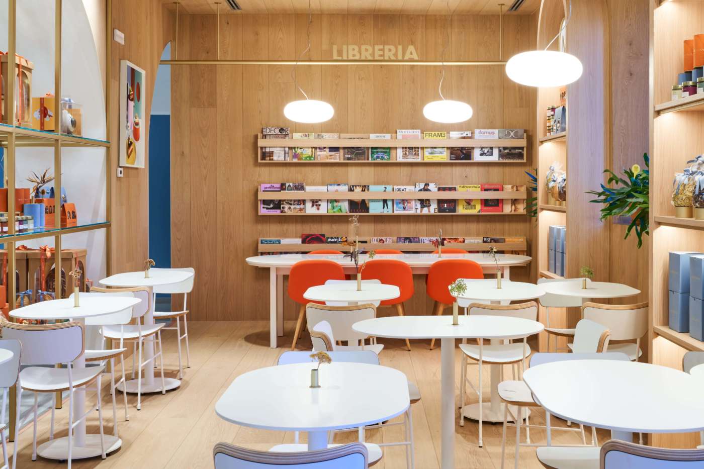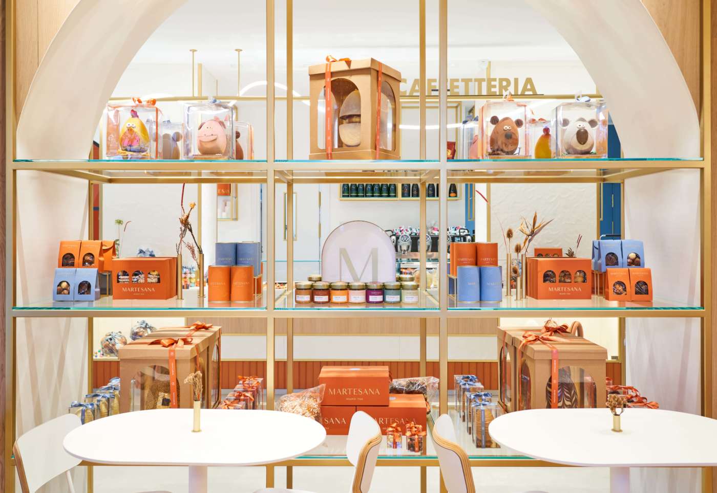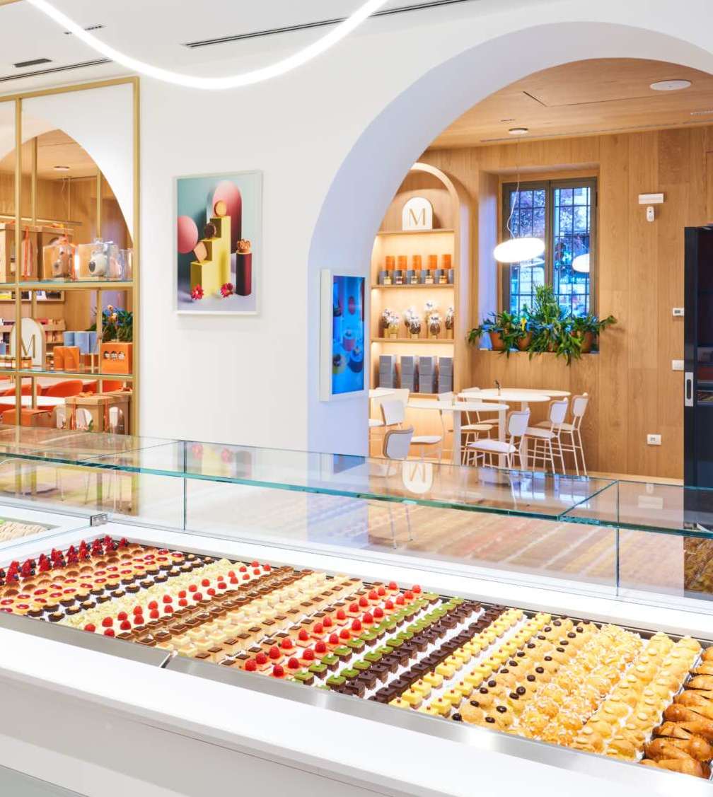 Il quinto punto vendita milanese di Martesana è il simbolo del nuovo corso della pasticceria, interamente pensato per valorizzare la nuova immagine di marca disegnata da Drogheria Studio (con il lavoro di Luigi Durante, Maria Teresa Reccia e Marcello Silvestre) con gli arredi di Tecnoarredamenti e la rinnovata partnership con Hausbrandt per la proposta di caffè. Durante e il suo team hanno raccontato di aver scelto l'immagine dell'arco (siamo a due passi dall'arco di Porta Romana), elemento presente già nella prima bottega Martesana datata 1966, come segno distintivo degli interni e della grande parete che suddivide il banco - stratificato come una torta - e l'area con i coperto. In fondo alla saletta, un lungo tavolo "social" e una parete-libreria con riviste e magazine liberamente consultabili. Sopra il banco, invece, una soluzione molto particolare per l'illuminazione: un nastro luminoso, che omaggia la gestualità dei pasticceri, la loro manualità e la capacità creativa del team di Vincenzo Santoro e Domenico Di Clemente. Il lavoro dei designer - che ha impattato anche sul packaging e su tutti gli altri elementi della brand image - continuerà anche sugli altri punti vendita, a partire da un lifting al negozio in Sant'Agostino.