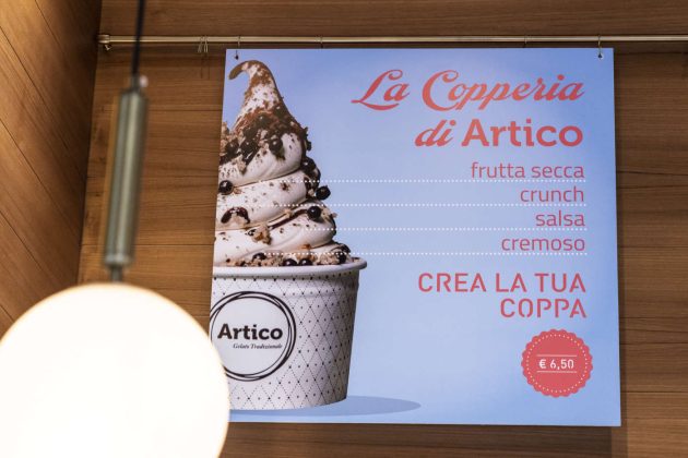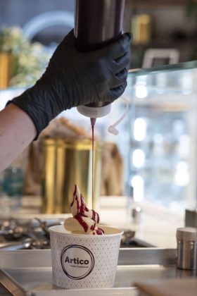 L'insegna, premiata con i Tre Coni del Gambero Rosso, crea il suo gelato a partire da ottimi prodotti con filiera corta, rispettosi di territorialità e stagionalità. La produzione dei 32 gusti in vetrina è quotidiana, grazie al laboratorio a vista, operativo 12 ore al giorno. «Offriamo ai nostri clienti un gelato sano, genuino e soprattutto senza compromessi perché per noi il ruolo dell’artigianalità è fondamentale - spiega Maurizio Poloni, a capo della produzione del gelato di Artico - Siamo convinti che l’arte del buon gelato consista nello scegliere materie prime di qualità e nell’esaltare gli ingredienti attraverso sapienti equilibri e creativi abbinamenti. Per questo garantiamo la qualità dei nostri prodotti utilizzando i migliori ingredienti d’Italia: nocciole del Piemonte IGP, pistacchio puro di Bronte e Sicilia, mandorla pura di Sicilia e Puglia, noci nostrane dell’Etna e prodotti locali d’eccellenza provenienti da piccoli produttori come lo zafferano, il miele a filiera corta, i formaggi e la frutta di stagione, sempre fresca e di altissima qualità».