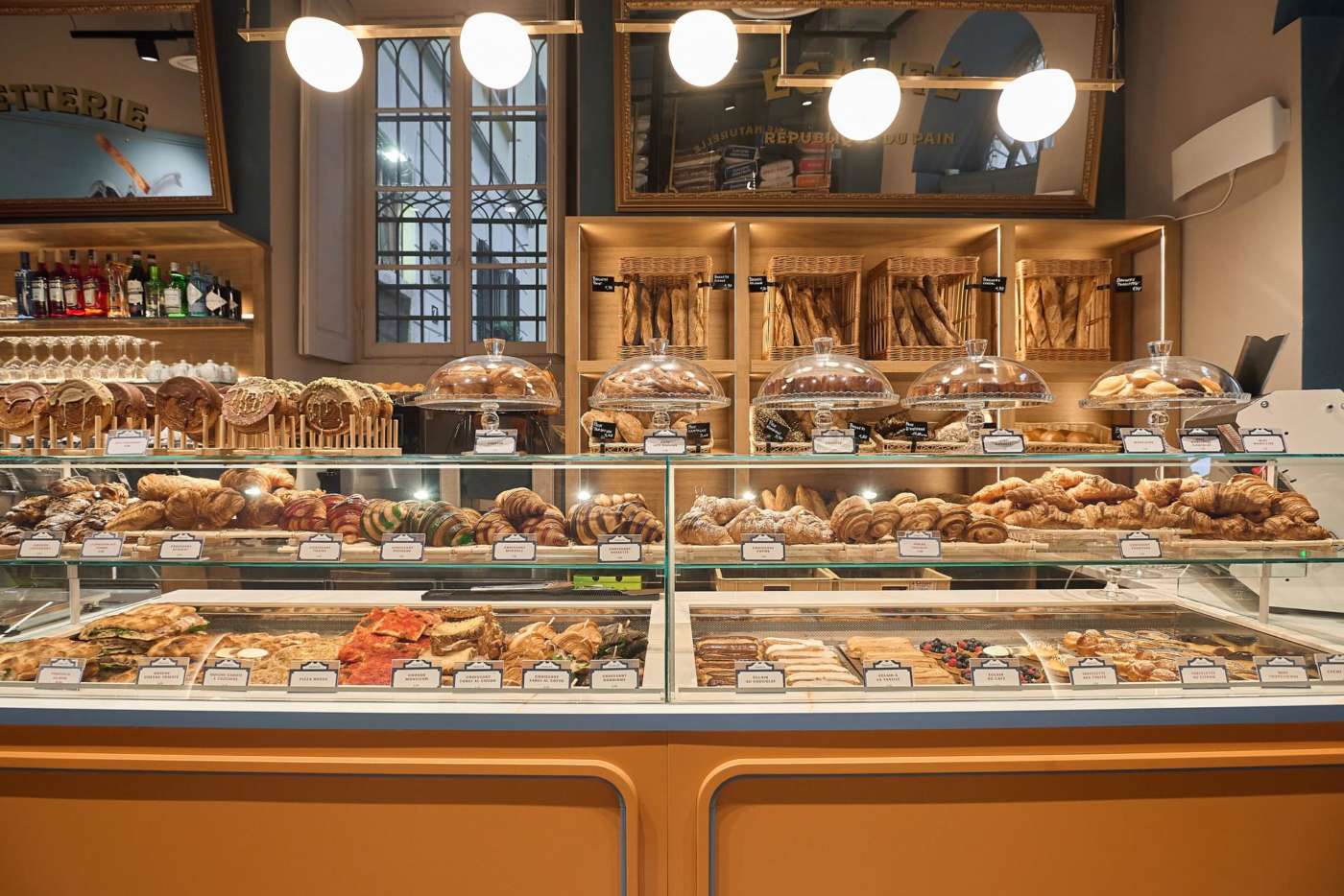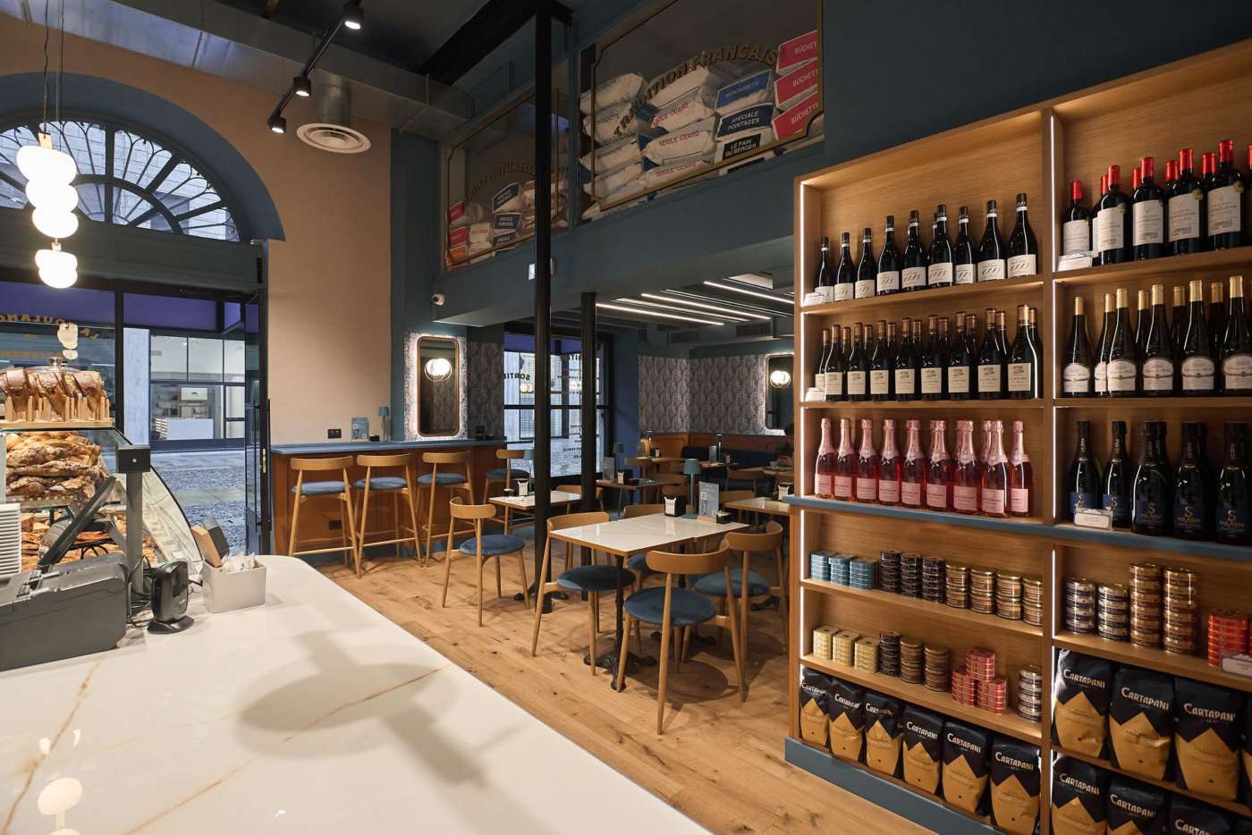Il negozio di San Simpliciano, si caratterizza per un’impronta eclettica che richiama, attraverso un approccio giocoso, i temi fondativi della cultura popolare francese. Ci sono la rivoluzione, le corti e i loro personaggi, con re, imperatori, rivoluzionari e contadini che fieramente brandiscono una baguette o un croissant. Nasce così un locale accogliente e informale di 20 coperti, che verrà completato da un dehors con vista su una delle più antiche e scenografiche piazze di Milano.