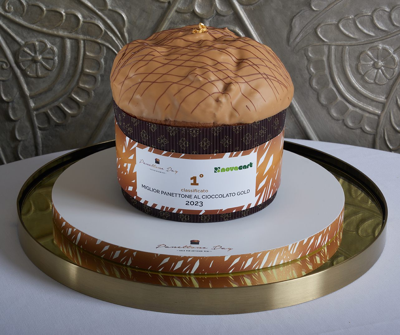 Il primo classificato come panettone al cioccolato gold è invece Francesco Bertolini di Bertolini & Figli a San Bonifacio (Verona): anche nel suo caso mela e cannella con gocce di Cioccolato Gold, copertura Gold e foglia d'oro.