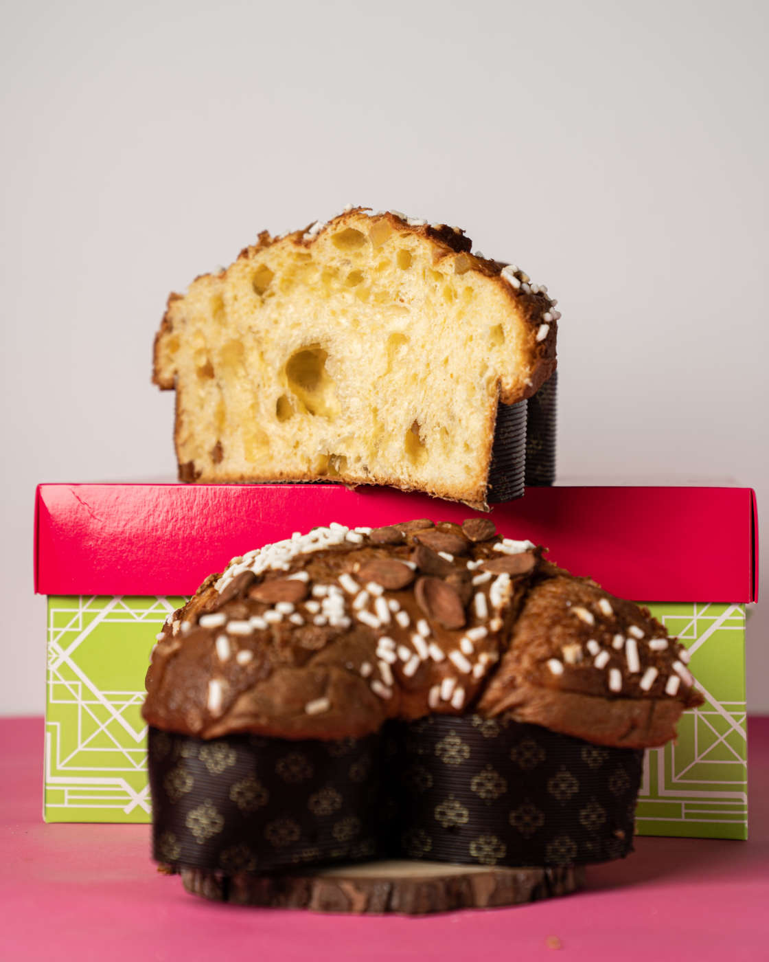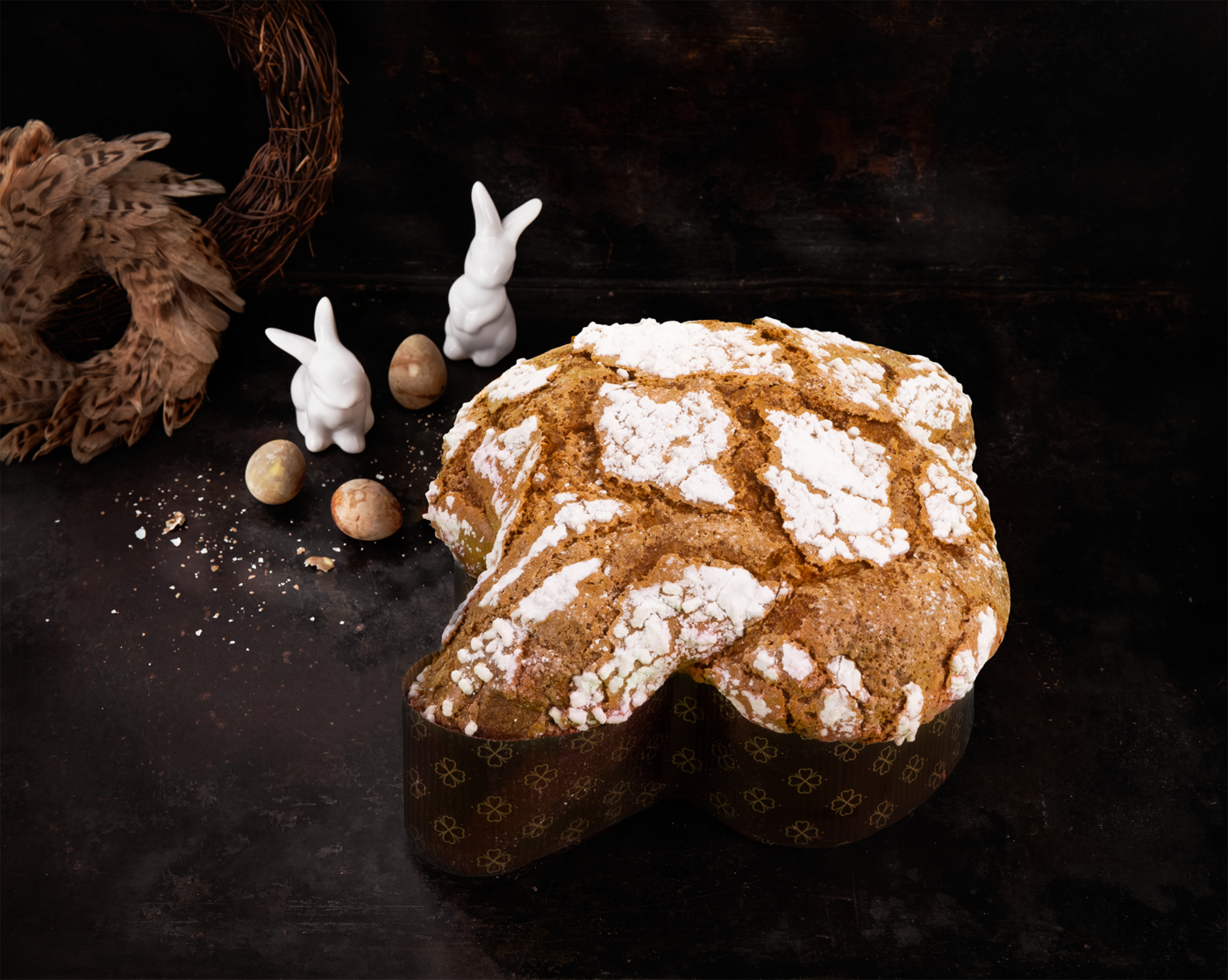 La colomba quattro cioccolati di Pino Ladisa Per le sue colombe 2024 Pino Ladisa parte dal suo lievito madre centenario per portare in vetrina la versione classica e quella amatissima ai quattro cioccolati. Entrambe sono realizzate a partire da farina di tipo 1 macinata a pietra con germe di grano, burro francese di Normandia e cioccolato Valrhona. La particolarità della versione ai quattro cioccolati è l’inserimento del Guanaja 70% fuso in fase di creazione dell’impasto. La glassa viene realizzata con mandorle di Toritto.