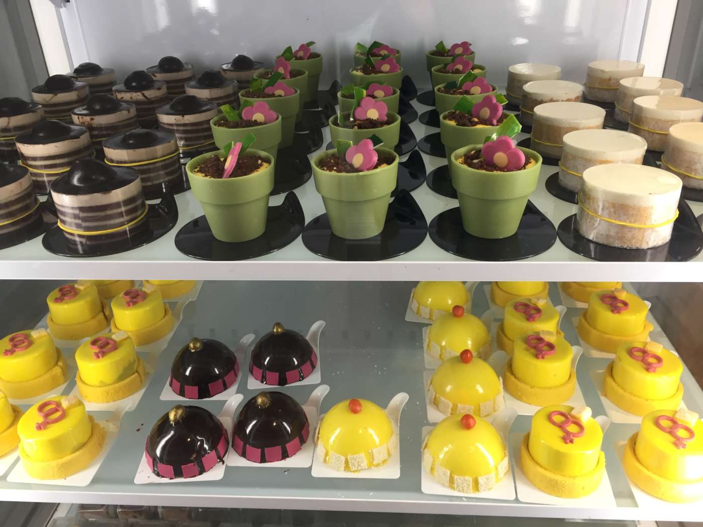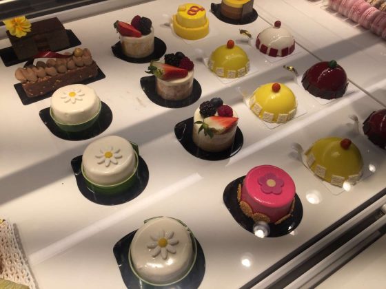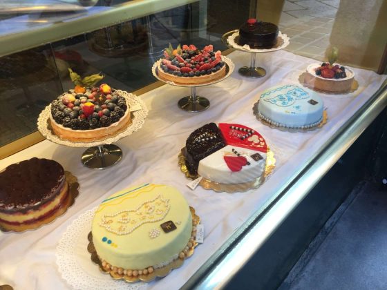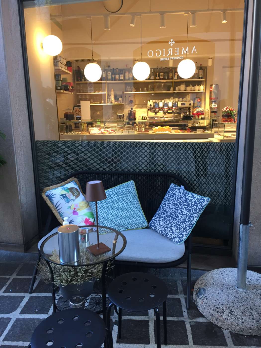 Il bianco di mobili e pareti è uno sfondo neutro che mette in risalto la coloratissima pasticceria: mignon, monoporzioni e torte moderne, perfette dal punto di vista estetico, divertenti e invitanti, sono esposte in vetrina, nel lungo bancone e nelle vetrine verticali. L’offerta comprende anche lievitati per la prima colazione, macarons, alcuni frollini, una piccola selezione di praline, gli immancabili dolci da ricorrenza, panini, tramezzini e piatti caldi per il pranzo, prodotti confezionati della casa. La bottigliera dietro il banco della caffetteria fa intuire che qui in tempi normali si può anche prendere l’aperitivo. Quattro i tavolini con divanetto nel locale d’ingresso (c’è anche un grande gazebo chiuso nel cortile sul retro). Caffè e mignon 3 €.