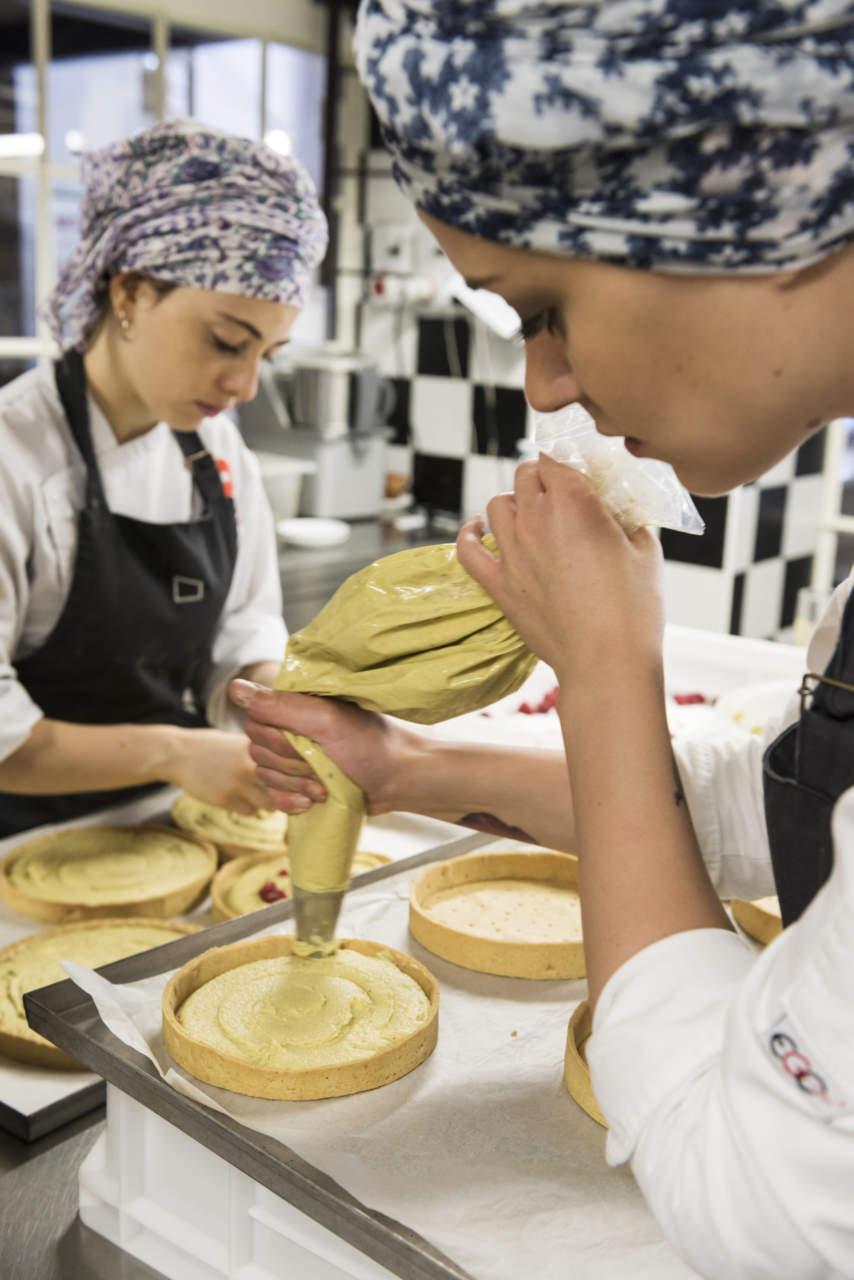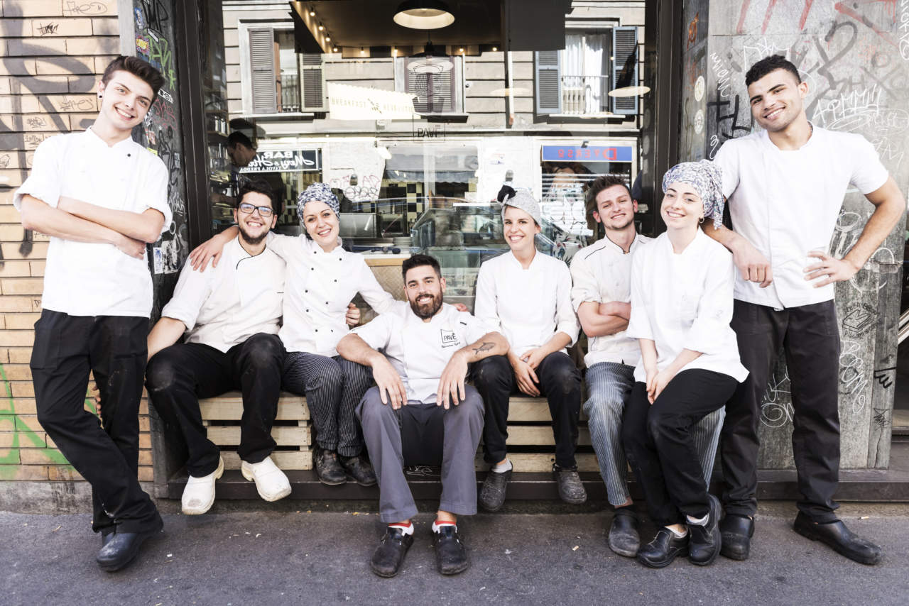 Lo staff di Pavé è oggi composto da 27 dipendenti. «Dagli esordi quando avevamo una sola collaboratrice a oggi l'evoluzione è stata grande - dice Giovanni - e abbiamo dovuto creare una gerarchia, stabilire ruoli e compiti precisi. Sono tutti giovani, è normale che nello staff ci sia un turnover rapido, così abbiamo rodato una modalità di trasmettere il know-how che ci consente di fare passaggi di consegne efficaci. Abbiamo dei responsabili di reparto che si occupano di far rispettare gli standard stabiliti, inoltre da poco abbiamo deciso di far ruotare il personale da un locale all'altro, sui vari reparti produttivi e di sala. Ogni collaboratore passa circa un mese in un reparto, poi viene spostato ad altri compiti. Così non ci si annoia, si è stimolati a imparare cose nuove e si impara a fare un po’ di tutto. Il che non guasta».