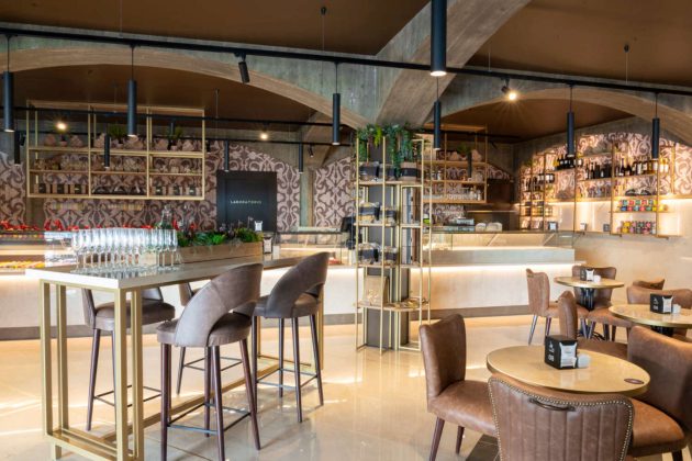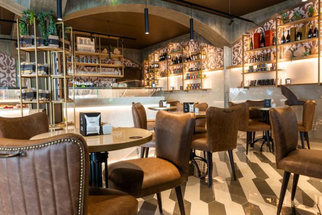 Vediamolo, allora, questo progetto. Il punto focale è il grande banco lineare di 10 m, costituito da diverse teche separate. Ognuna è dedicata a una singola macrocategoria, presentata in maniera ben distinta dalle altre «perché abbiamo voluto dare valore a ogni tipologia di prodotto, distinguendola dagli altri. Voglio che chi entra pensi: questa è la casa della pralineria, la casa delle torte da forno, e così via», dice Cantarin. La ristrutturazione ha puntato in primo luogo sull’asporto. Che, rivela Cantarin, «per noi è molto meno costoso da gestire rispetto ai tavolini. Ci trovassimo in centro a Padova, potremmo far pagare un sovrapprezzo per coperto e servizio, ma siamo in un piccolo centro di provincia, il pubblico non lo accetterebbe». Inoltre, il Covid ha modificato il modo in cui il locale viene vissuto dalla clientela e ha indotto, per esempio, a installare una porta automatica all’ingresso. La pasticceria Marisa può contare su un dehors di 80 posti a sedere, uno spazio riscaldato e preferito dai clienti anche in inverno, in tempi di pandemia. Tuttavia, l’area interna dedicata alla consumazione non è stata trascurata. Sono state create diverse esperienze di fruizione, con un tavolo conviviale da 4 posti per le consumazioni in piedi, tavolini e sedute di vario tipo, poltroncine e divanetti, «molto comode, come richiede un locale di questo tipo», chiosa Gottardini.