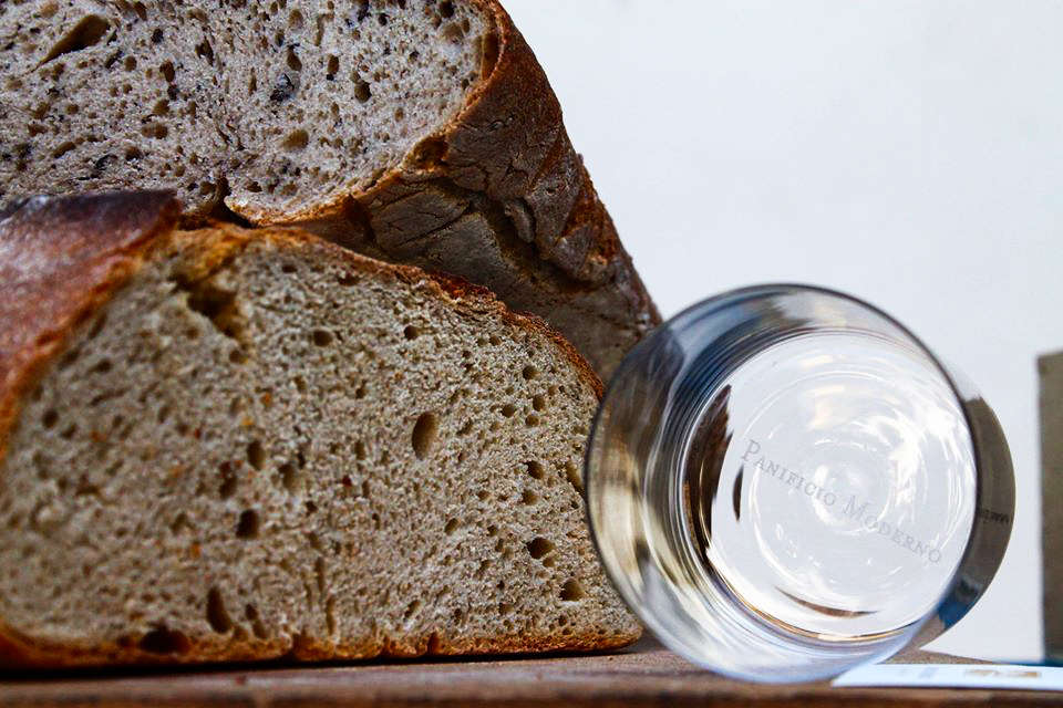 Attenzione è una parola che torna spesso: alle persone («Non si riesce a fare impresa così se non le si fa crescere e non le si tratta con rispetto»), all’aspetto sociale della panificazione e a quello ambientale. «Il nostro riferimento non è il territorio, ma i territori: saper creare rapporti stretti con i produttori, cercare produzioni di eccellenza». L’ultimo progetto di Panificio Moderno si chiama Pane comunale ed un pane frutto della collaborazione di tre imprese strettamente legate alla zona. Il grano tenero viene coltivato con metodo biologico dalla Società Agricola Frinsighelli a Lenzima d’Isera, mentre della macinazione si occupa una cooperativa sociale, il Gruppo 78 “Mas del Gnac” di Isera. Il forno è quello di Panificio Moderno e il risultato finale è una pagnotta da 1,5 kg, per la quale è stato anche calcolato l’impatto sociale: per ciascuno sono garantite 2 ore di percorso di avvicinamento al lavoro per una persona, e 4 mq di terreno con coltivazioni bio.