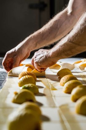 Cosa significa produrre un pane “di filiera”? Rispettare il percorso produttivo del pane e porre attenzione anche agli aspetti etici, ambientali, sociali in ogni passaggio. E, alla qualità. Vale anche per la pasticceria da forno. Non significa restare fuori dalle logiche economiche, anche se ogni tanto qualche colpo di testa ce lo concediamo. Per esempio? I canditi. Ci occupiamo noi della canditura. Dobbiamo prepararne 5 quintali, non poco direi. Ci hanno detto in tanti che è una follia, ma non intendiamo arretrare su questo. Idee per lo sviluppo futuro del Panificio? I due canali su cui vogliamo investire sono i nostri negozi e le fornitura alla medio-alta ristorazione. Mi immagino una maggiore presenza negli agriturismi o negli alberghi.