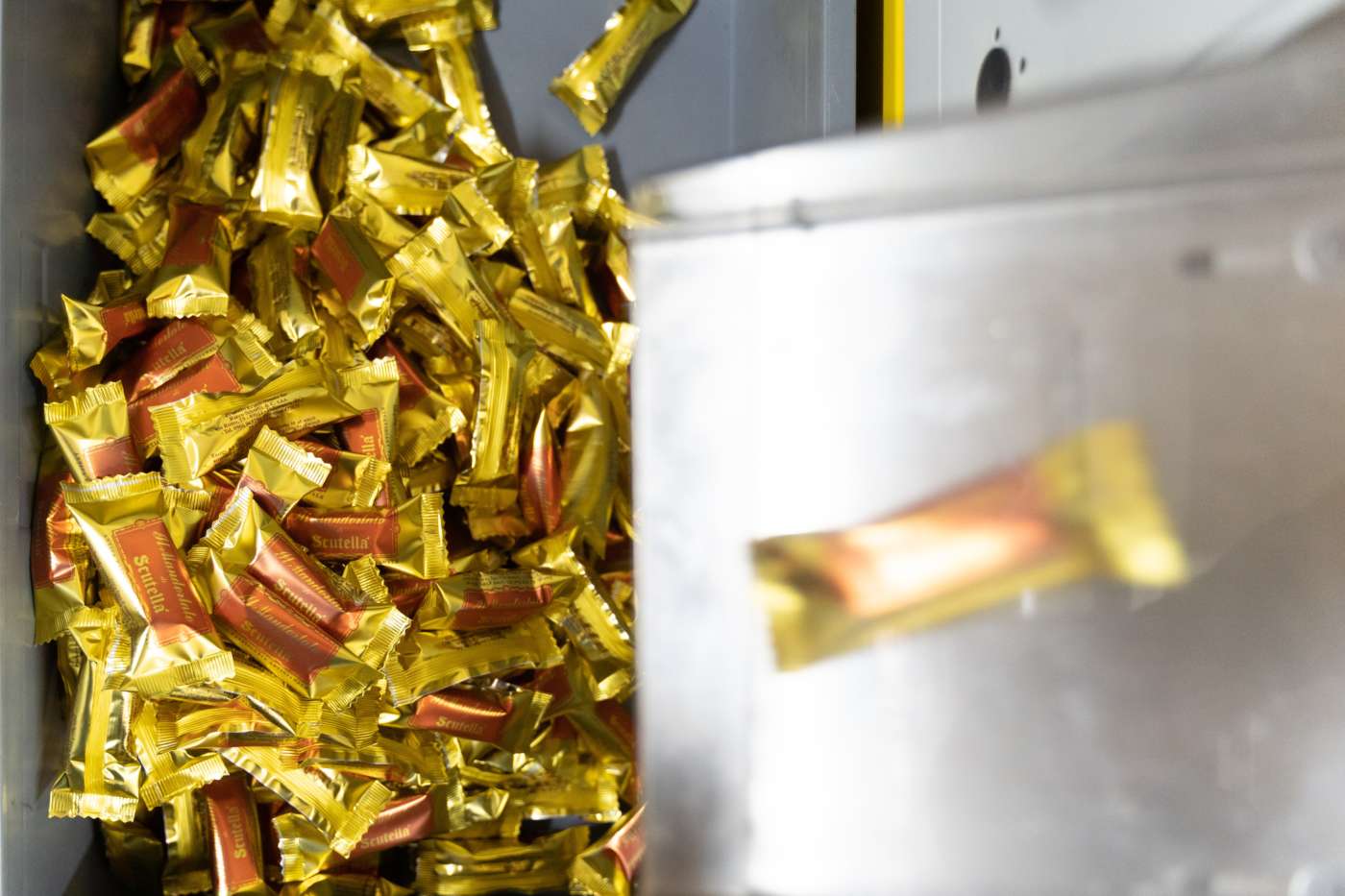 Non è stato facile convincere il papà di Rocco Scutellà che la confezionatrice sarebbe stata una svolta nella produzione. Per lui tutto doveva essere manuale, compreso il packaging. I vantaggi nella velocizzazione della produzione l’hanno tuttavia fatto ricredere e alla fine di confezionatrici ne sono entrate ben due in laboratorio. La prima gestisce le pezzature tradizionali, da 11x2,5cm, l’altra è per incartare le mignon da 25g, che si sono imposte perché più eleganti da offrire. Ha un pannello touch screen e un sistema di centratura, che consente di lavorare, come nel caso dei torroni Scutellà, con film a grafica personalizzata.