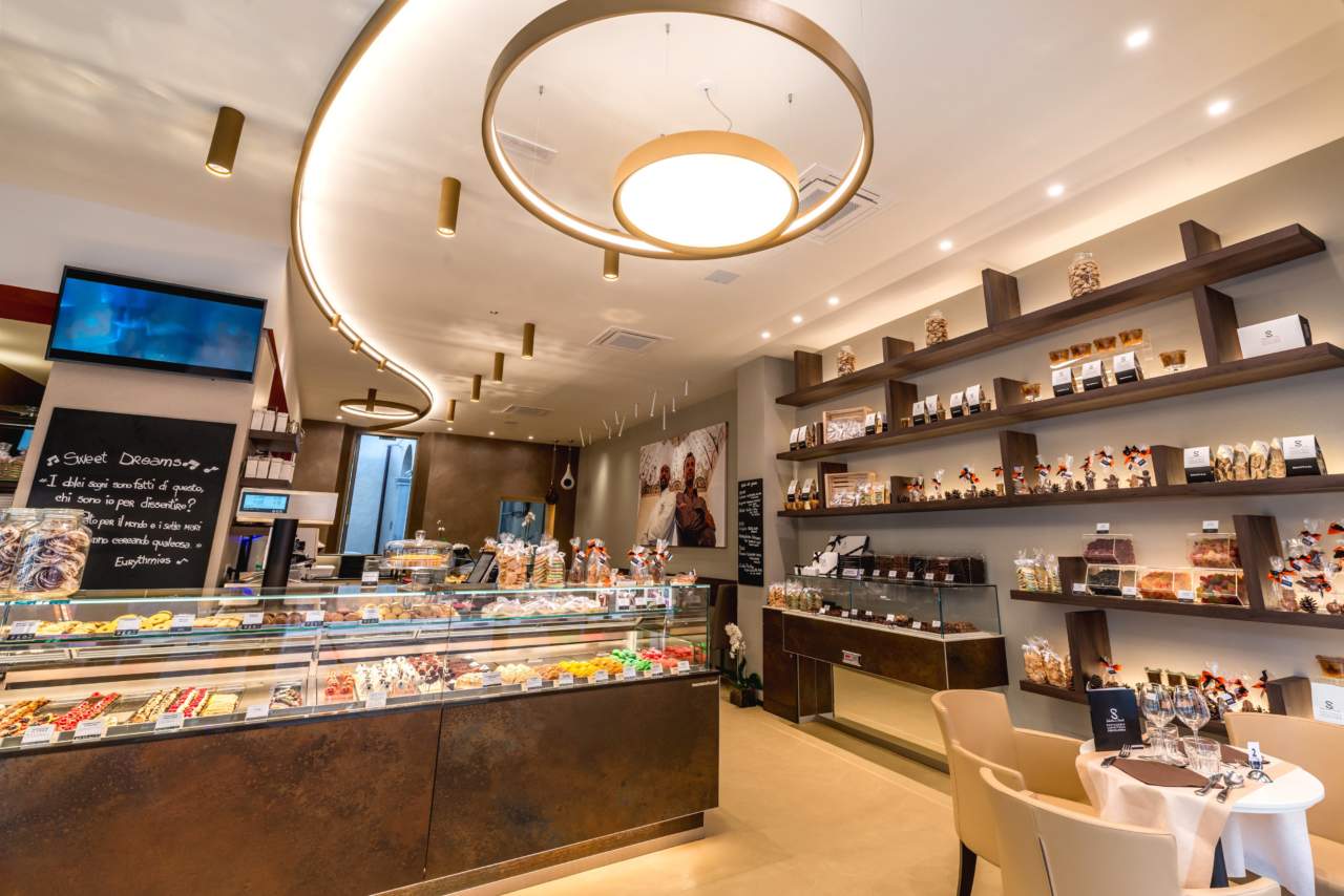 Sebastiano Caridi, da pochi mesi maestro pasticcere di Ampi, delle sue origini conserva la ricerca dei sapori e la qualità dei prodotti, dalla sua formazione raccoglie i risultati di una ricerca continua e la perfezione nelle preparazioni. Non per nulla è stato riconosciuto come il “più grande pasticcere d’Italia”, titolo che gli ha permesso di ottenere fama e notorietà, manifestatasi in maniera esaltante in occasione dell’inaugurazione a Faenza della pasticceria-caffetteria-cioccolateria che insieme al socio Giorgio Gonelli ha aperto al pubblico il 23 settembre 2016. E, da allora, l’azienda funziona a pieno ritmo. «In quattro mesi abbiamo creato il nostro locale» afferma Sebastiano Caridi, che dopo la vittoria al cooking show televisivo della RAI “Il più grande pasticcere” ha deciso di mettersi in proprio. Come racconta lui stesso, in molti gli si sono avvicinati con proposte di ogni tipo, ma il suo sogno era quello di aprire un proprio locale, che avesse il “suo segno”, un’impronta precisa. L’occasione per trasformare questo sogno in una vera azienda scaturisce da un incontro con Giorgio Gonelli davanti a un bicchiere di vino: l’accordo nasce in fretta ed anche la società, che si fa forza - oltre alle singole competenze - dell’esperienza di Giorgio costruita nell’apertura di 27 locali e del “brand” Sebastiano Caridi. In pochissimo tempo nasce “Sebastiano Caridi”, il locale che - non poteva essere diversamente - porta il suo nome. La scelta è tanto semplice quanto complessa: creare un format capace di garantire la più completa miscellanea di esperienze. E per questo motivo, dalle 6.30 sino alle 21.00, il locale si trasforma continuamente, occupando - con modalità e servizi diversi - tutti gli spazi orari. Non ci si accontenta, in sostanza, di essere una mera pasticceria o una semplice caffetteria: qui ci si sposta continuamente verso un brunch gourmet, una merenda ricercata o un aperitif time. La questione è proprio questa: Sabastiano Caridi offre servizi diversi a orari diversi. Solo la firma rimane la stessa: una firma che si riconosce all’ingresso, con una visione a 360° dei prodotti che segnano il successo del “più grande pasticcere d’Italia”. Davanti la pasticceria mignon, sulla destra la cioccolateria, a sinistra le torte: appena si entra si è avvolti da ciò che, meglio di qualsiasi altro prodotto, caratterizza lo stesso Sebastiano. Ma questa è anche una precisa scelta di marketing, con la quale tutto lo spazio a “immediato contatto visivo” viene condiviso con i clienti. Oltre a questa area d’ingresso - che rimane sostanzialmente immutata - durante la giornata il locale ed il servizio varia col passare delle ore. Succede così che dalle 6.30 sino alle 11.00 è il breakfast a farla da padrone col servizio di caffetteria e una quantità esaltante di prodotti da colazione, tutti a base di lievito madre. Si va dalle 18 tipologie di croissant e cornetti dolci e salati alle 28 tipologie di mignon, sino alle 18 torte che lo stesso Sebastiano definisce “torte moderne”, da forno e non. Poi, dalle 11.30 il locale muta, offrendosi per l’aperitivo ma, soprattutto, per il brunch. Ogni giorno vengono proposte 7/8 tipologie di piatti che cambiano ogni due settimane: paste, vellutate ecc., ma anche la “focaccia gourmet”. Si tratta di 4 tipologie di focaccia ad alta digeribilità, con impasti a 24 ore di lievitazione, per veri cultori della focaccia. Un prodotto davvero unico. Pausa caffè e dalle 15.00 Seba- stiano Caridi “apre” alle merende con proposte di biscotteria - 18 tipologie di biscotti - con abbinamento di infusi, oltre a un menu di monorigini di ciocco- lato. Interessante la formula proposta: cioccolata calda “ad personam” in base alla scelta del cacao. Si arriva all’orario aperitivo: la scelta è controcorrente, e per questo interessante. Nessun buffet - dove è possibile trovare di tutto, ma anche il nulla - per lasciare posto a una degustazione gourmet di 5 preparazioni (ad esempio, in questo periodo un crostino con tartufo bianco), in accompagnamento all’aperitivo. Forte specializzazione per quanto riguarda le bollicine e focus speciale sui formaggi. Decisamente interessante la formula proposta da Sebastiano Caridi per quanto riguarda proprio i formaggi. Non è tanto la presenza di una carta dedicata alle migliori produzioni mondiali di cheese - 15 selezioni - quanto il servizio proposto. Viene infatti offerta la possibilità di degustare formaggi introvabili “a peso”. Vi è però sempre qualcosa che non cambia con il variare dell’orario perché dal primo caffè della mattina sino all’ultimo aperitivo serale il sorriso e la cordialità dello staff sono parte integrante del servizio. Poi, finalmente, un locale dove il personale lavora alla stessa “altezza” del cliente, perché non vi sono pedane dietro al bancone.
