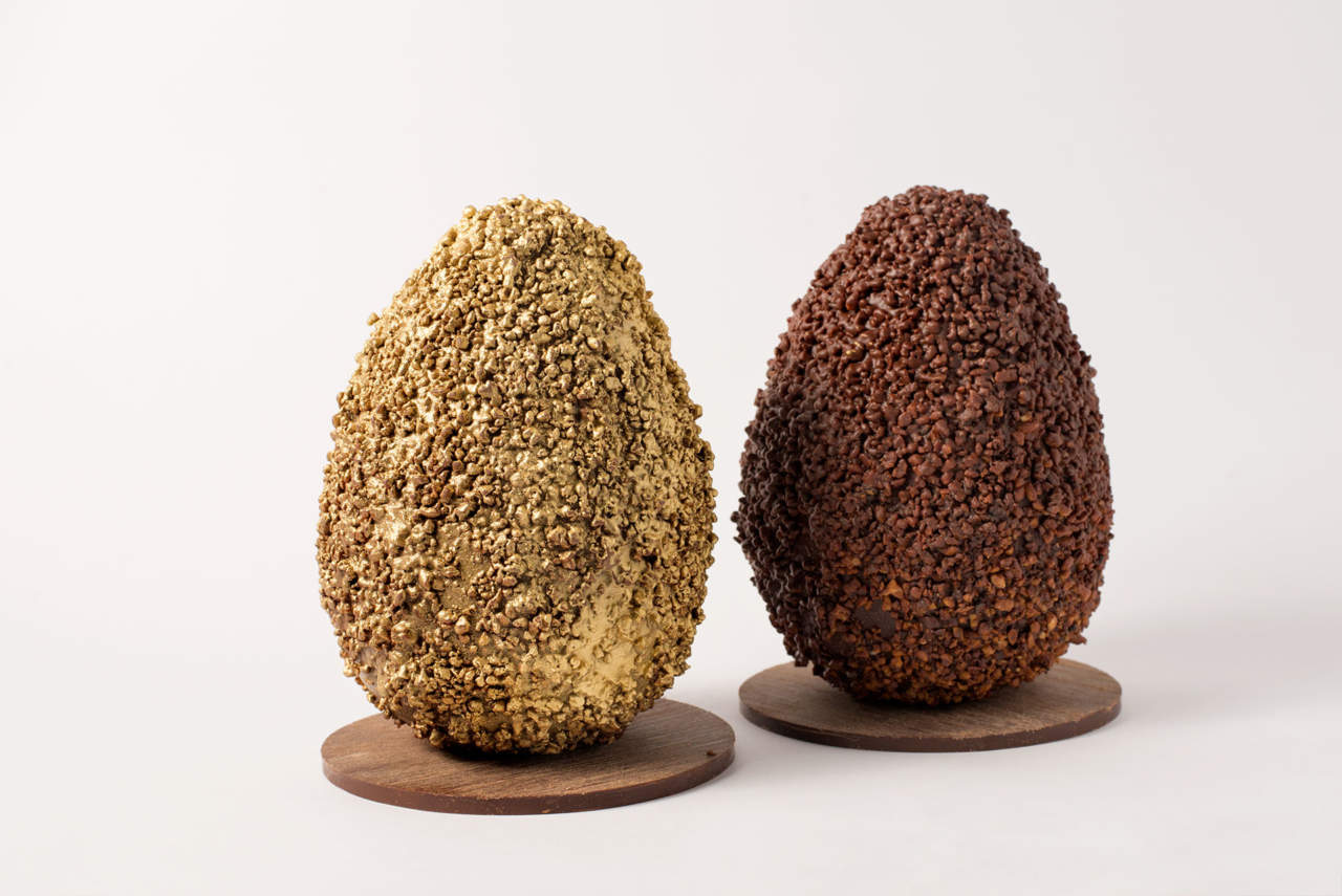 Le passioni muovono il mondo, se poi si parla di calcio e di pasticceria possono nascere uova di Pasqua davvero speciali. Sono a forma di zebra e di toro, simboli calcistici della città di Torino, quelle firmate Del Cambio, disponibili sia al cioccolato al latte, che al cioccolato fondente. Inoltre il pasticciere Fabrizio Galla, che affianca lo chef Matteo Baronetto nel ristorante Del Cambio di Torino e nella Farmacia Del Cambio, pasticceria annessa al ristorante stellato, ha ideato delle uova ricoperte di praline dorate o sommerse da una colata di granella di nocciole caramellate. Il laboratorio torinese ha inoltre creato una minicollezione di uova monoporzione dai colori pastello, decorate con piccoli fiori commestibili, che racchiudono una mousse di yogurt e banana, una composta di fragole oppure una mousse di vaniglia e frutti esotici. Per il primo anno, la Farmacia Del Cambio ha creato anche ovetti di cioccolato Gianduia, fatti con Nocciole Piemonte Igp, di consistenza cremosa e sapore intenso.