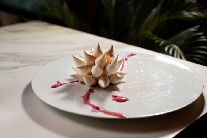 La ricetta di Supernova prende spunto dall'AntiPavlova cake, dolce geometrico messo a punto da Dinara Kasko. La creazione della pastry chef ucraina mette bene in evidenza un gusto estetico unico, influenzato dalla sua formazione in architettura. Grazie al lavoro su inserti e modalità di presentazione delle meringhe, Kasko è riuscita a innovare un must della pasticceria mondiale come la Pavlova, rendendo iconica la sua rappresentazione. Supernova contiene inserti di mango e frutti di bosco come nella preparazione ucraina. Ma la ricetta di Dell'Agnello si differenzia per alcuni aspetti, come l’utilizzo di latte di cocco al posto del mascarpone. Completano il dessert spikes di meringa alla francese, una mousse al cocco e vaniglia, una dacquoise alla mandorla, un gel lime e della polvere di lamponi. Si tratta di preparazioni che ben si inseriscono nella filosofia di cucina di contaminazione nippo-peruviana che Noemi Dell’Agnello e il suo compagno e co-proprietario Matteo Fornaro propongono sia nei piatti sia nei cocktail di Azotea. A suggerire il nome Supernova è stata l'estetica del dolce di Dell'Agnello, simile a una stella.
