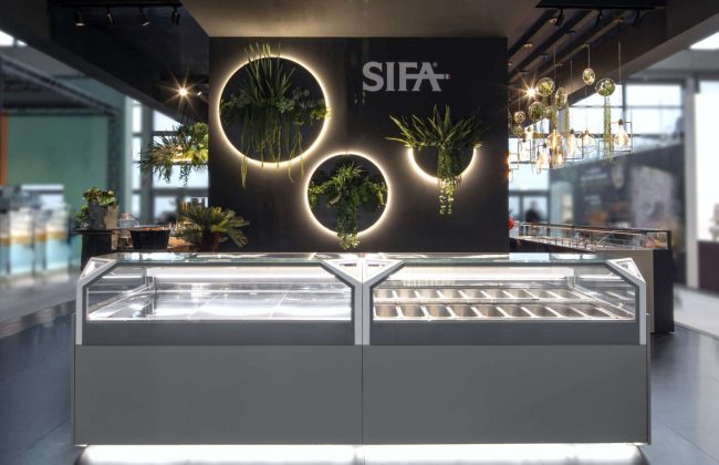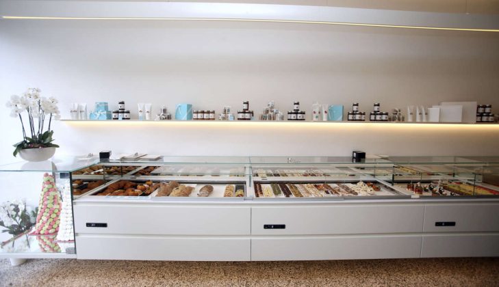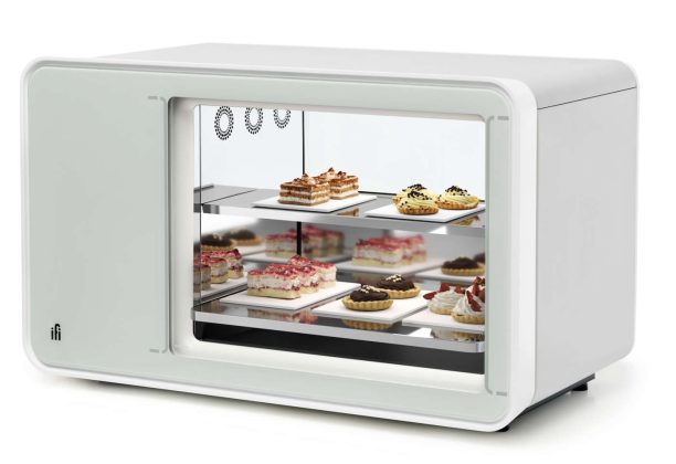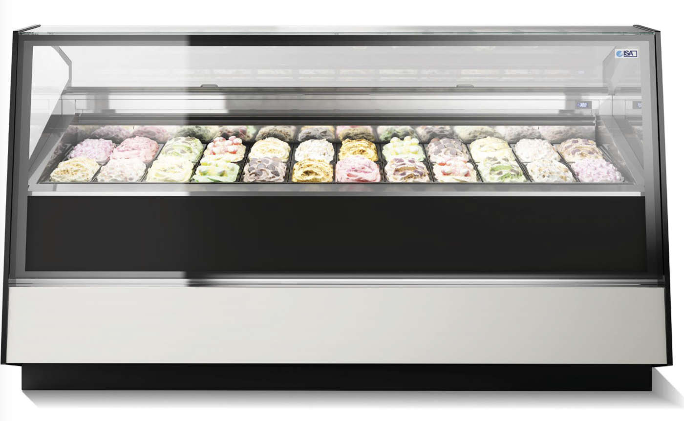 La vetrina Vik Full Refrigeration di Frigomeccanica è progettata per avere la refrigerazione su tutti i piani in modo da avere un’uniformità di temperatura intorno ai 2/4 gradi C. L’illuminazione è a led su ogni piano del tipo ad elevata resa cromatica. Le pareti sono in vetrocamera trasparente e consentono un notevole isolamento e risparmio energetico. Il vetro anteriore è apribile con servomeccanismo elettrico per una facile pulizia. Le unità condensatrici (motori) ad alta efficienza possono essere interne o remote. Dati tecnici Dimensioni lunghezza: 1.000 o 1.350 mm; altezza: 1.200 o 1.400 mm • Temperatura 0°/+5°C per food o pasticceria - +14°/+16°C per pralineria (anche con controllo umidità al 55/60%) • Illuminazione led. 7 - Ifi - Compatta con remote control Al Volo di Ifi è una vetrina refrigerata da banco pensata per l’esposizione di gelato sfuso, ma anche di piccola pasticceria e pralineria, in base alla tipologia di allestimento che si sceglie. È dotata di refrigerazione ventilata e possibilità di controllo a distanza con il sistema Ifi Iot Remote Manager. Progettata dallo studio MM Design, Al Volo è stata selezionata tra circa 10.000 candidature tra i finalisti dell’iF Design Award 2021, conferito ogni anno dall’omonimo organismo indipendente di design, che ha sede ad Hannover, in Germania. Dati tecnici Dimensioni lunghezza: 953 mm; altezza: 588 mm; profondità 380 mm • Temperatura -18°/-2°C per gelato; +4°/8°C per pasticceria; +14°/18°C per pralineria • Materiali struttura in lamiera verniciata, cornice in Baydur, sportello in vetrocamera riscaldato. 8 - Isa - Apertura servoassistita